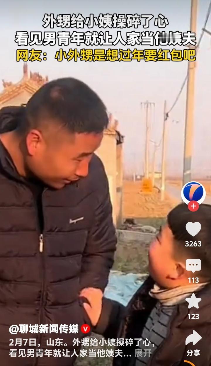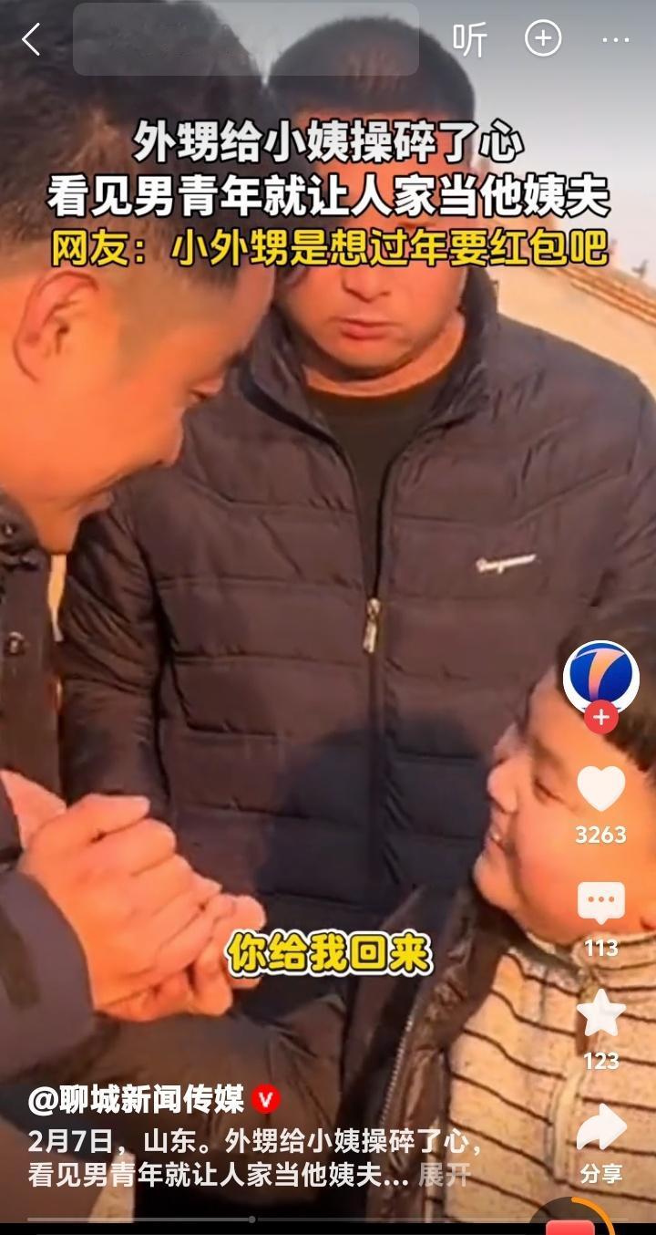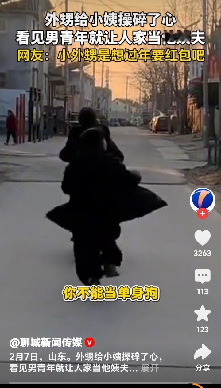 山东聊城6岁萌娃街头“硬核征婚”,见男青年就拽:“叔叔,娶我小姨吧!她28岁会做
