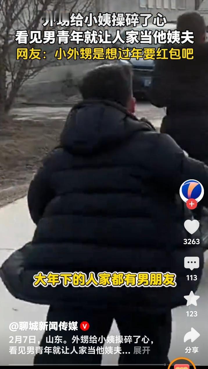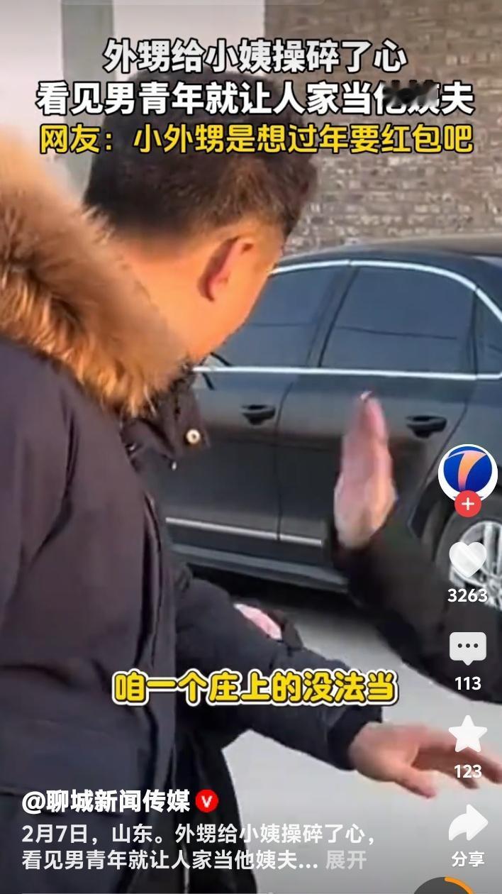 山东聊城6岁萌娃街头“硬核征婚”,见男青年就拽:“叔叔,娶我小姨吧!她28岁会做饭!”視頻全网围观暖心催泪现场 视频里那个小小的身影,在山东聊城熙攘的街头奋力奔跑。他甩开小姨的手,目标明确地冲向一位陌生男青年,一把拉住对方衣袖,仰起稚气未脱却写满认真的小脸,开始了他的“标准话术”:“叔叔,你当我小姨夫呗?”这一幕,让无数屏幕前的网友瞬间破防,笑着笑着,眼眶就湿了。 这个六岁的孩子,用他最纯粹的方式,守护着心中最重要的人。他不懂什么是“大龄剩女”,也不明白社会的婚恋压力,他只知道,他最亲爱的小姨,应该有人陪伴,应该获得像童话里一样的幸福。他的每一次“出击”,都是一次笨拙而赤诚的告白。 旁人看来是童言无忌的闹剧,背后却藏着一份超越年龄的深刻共情。孩子敏锐地感知到了小姨偶尔的孤单,以及家人隐晦的担忧。他用自己全部的世界观——对“好”的理解,来为她构建一个安全的港湾。这份洞察,让多少在情感中麻木的成年人自愧不如。 我们笑的,是孩子的天真举动;我们心里被触动的,是那份毫无杂质、不求回报的牵挂。在这个计算得失、权衡利弊的成人世界里,孩子用行动上了一课:爱,就是希望你所爱的人,能被世界温柔以待,哪怕我要为此充当那个勇敢的“推销员”。 镜头转向那位28岁的小姨,她的尴尬与无奈之下,何尝不是深深的感动与心酸。年轻人的婚恋选择日益多元,个体追求与家庭期待之间常有拉锯。外甥的“催婚”,像一面镜子,映照出单身青年普遍面临的、来自亲人最质朴的关怀压力,这种压力因孩子的介入而显得柔软,却也更加直抵人心。 事件迅速发酵,并非只因猎奇。它精准戳中了当代社会关于“亲情边界”、“代际沟通”与“个人幸福定义”的集体神经。我们一边为孩子点赞,一边反思:我们是否也曾用自以为是的“为你好”,给所爱之人带去甜蜜的负担?真正的关怀,究竟该以何种姿态呈现? 这个山东萌娃的故事,早已超越了个体趣闻。它是一场关于爱与责任的公开课,让我们看到,最动人的情感往往包裹在最稚嫩的外壳里。它不问缘由,不计成本,只想把最好的,都给你。 (來源:聊城新聞傳媒) 暖心外甥 催婚新姿势