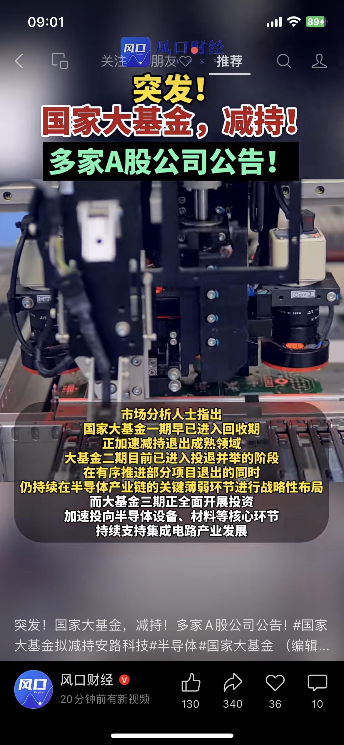 突发!国家大基金减持3家半导体公司! 昨晚安路科技公告,国家大基金拟减持不超2%股份,加上之前的沪硅产业、泰凌微,这波减持潮根本不是看空,而是大基金一期“毕业一批、再带一批”的正常操作。说白了就是把成熟项目的钱收回来,去投更卡脖子的设备、材料环节。咱们普通人别慌,炒个股不如抱ETF大腿,选规模10亿以上、跟踪误差小于0.1%的半导体ETF,稳得多。 国家大基金不是跑路,是给半导体产业“换血升级”。 你会趁这波调整低吸半导体ETF,还是继续观望? 国家大基金减持 半导体ETF 财经热点 A股 市场有风险,投资需谨慎,以上仅为个人观点,不构成投资建议。