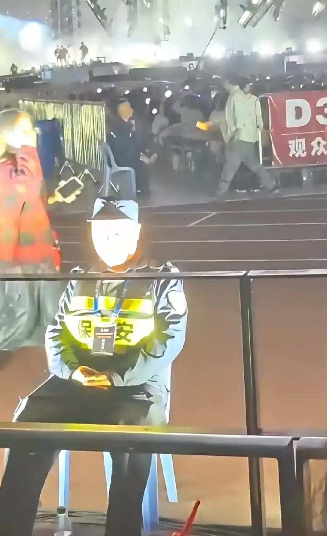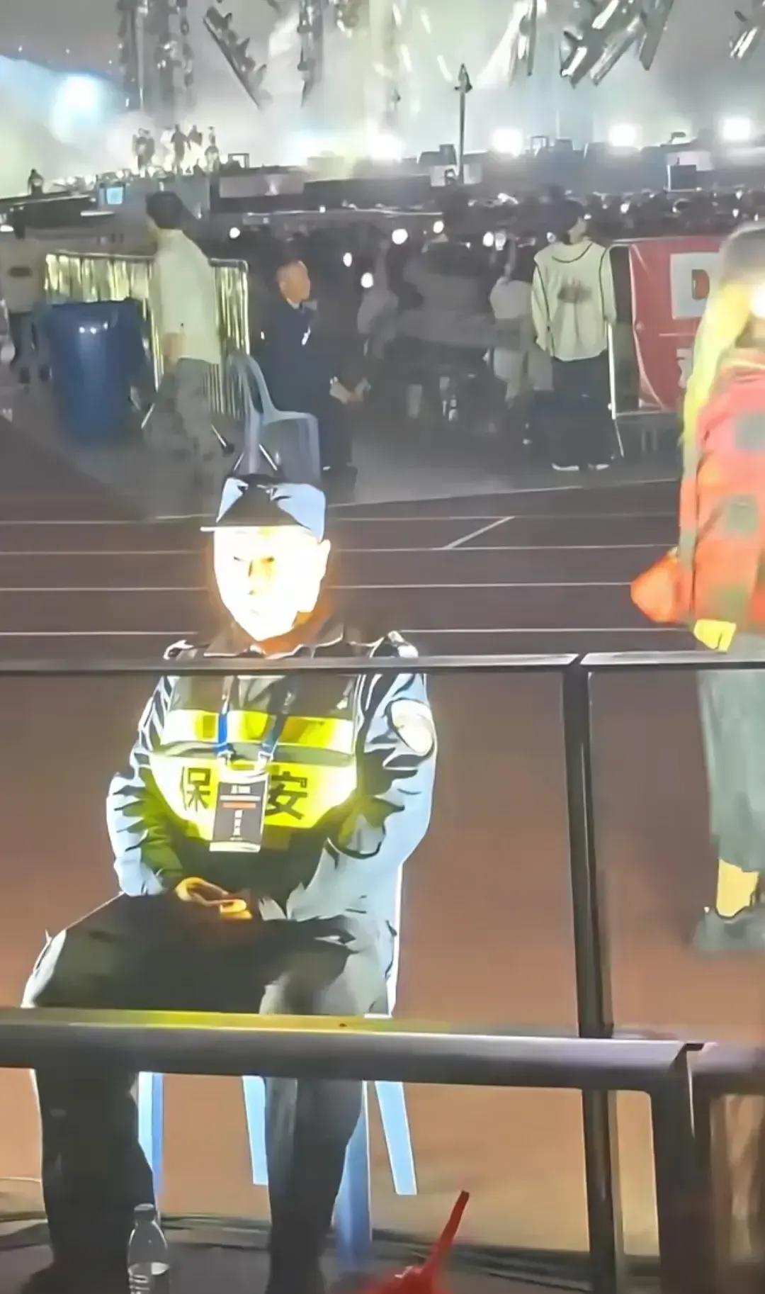 舞台光束下的保安大叔宛如奥特曼附体,逗趣模样十分搞笑!