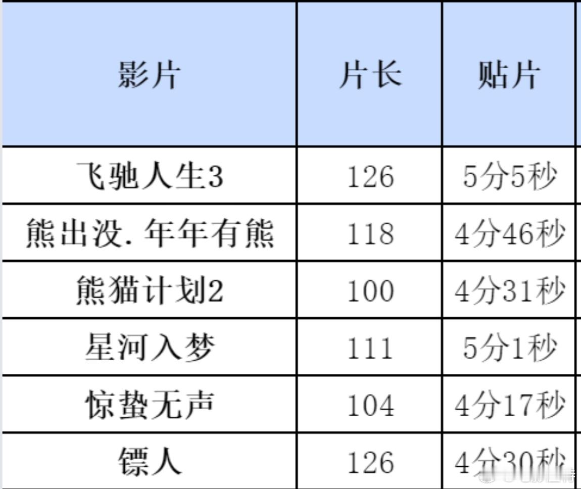 春节档马上有戏飞驰人生3:贴片5分05秒熊猫:贴片4分31秒,惊蛰无声:贴片4分