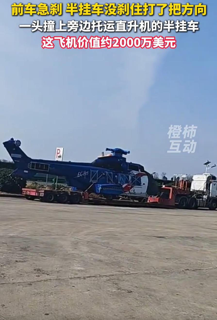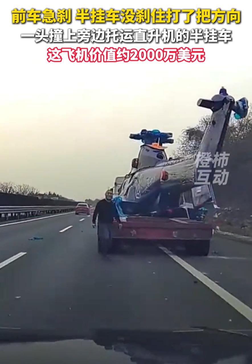 “挑了个最贵的!”湖北,一半挂车在路上行驶时突然遇到前车急刹,结果半挂司机没刹住车,急打了把方向盘,却撞到了旁边托运直升机的半挂车上,而它上面的直升机价值上亿,这下怕是连保险公司都赔不起了 根据后车行车记录仪显示,事发地点是在快车道上面,当时几辆车都在快车道上正常行驶,最前面一辆小车不知什么原因突然急刹车。后面跟着的一辆半挂货车跟得有点近,一下子刹不住,司机情急之下猛打方向盘想避开,结果直接撞上了旁边车道上的另一辆半挂车 要命的是,旁边这辆半挂车上运的不是普通货物,而是一架EC225型直升机。这种直升机可不便宜,出厂报价在2000万到3500万美元之间,换算成人民币得1.4亿到2.5亿元 很多网友最关心的就是这个情况该如何处理,损失由谁来承担 首先得说,路上开车保持安全距离真不是老生常谈。尤其是大货车,惯性大、刹车距离长,跟车太近就是把自己和别人都置于危险中。这次虽然直接原因是前车急刹,但后车跟得太近也是事实 那损失到底谁来担?一般来说,交通事故责任认定要看各方的过错程度。前车如果无故急刹,可能要承担责任;后车跟车过近、操作不当,责任也跑不了。至于保险公司赔不赔得起,这确实是个现实问题。普通商业险的赔付额度有限,面对上亿的损失,很可能不够用 这也引出一个问题:运输如此高价值的特种货物,承运方有没有购买足够的保险?路上其他车辆是否意识到自己旁边跑着的可能是个“移动的金库”? 这件事给所有司机提了个醒:路上看到运输特殊物品的车辆,特别是那些外形异常、有特殊标识的,最好多留点安全距离。你不知道那里面装着什么,可能是精密仪器,可能是危险化学品,也可能是价值连城的设备 保持安全距离不仅仅是为了避免撞上,更是为了给自己足够的反应时间。就像这次,如果后车距离留得足够,前车急刹时就有更多缓冲余地,可能就不会急着打方向,也就不会撞上旁边的直升机了
