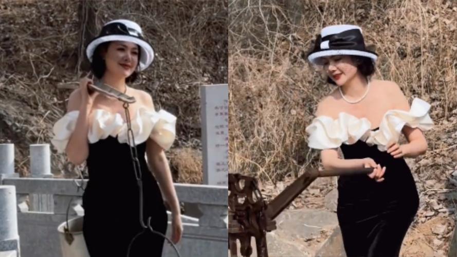 程莉莎身着赫本风套裙、脚踩高跟鞋回村干活,在白菜地里优雅摆pose,将田间地头变成时尚秀场。她虽打扮精致,却毫不矫情,挖菜、喂鸡、吃粗粮样样在行,用行动展现对丈夫的尊重与爱,这份真诚与接地气令人动容。程莉莎穿搭风格