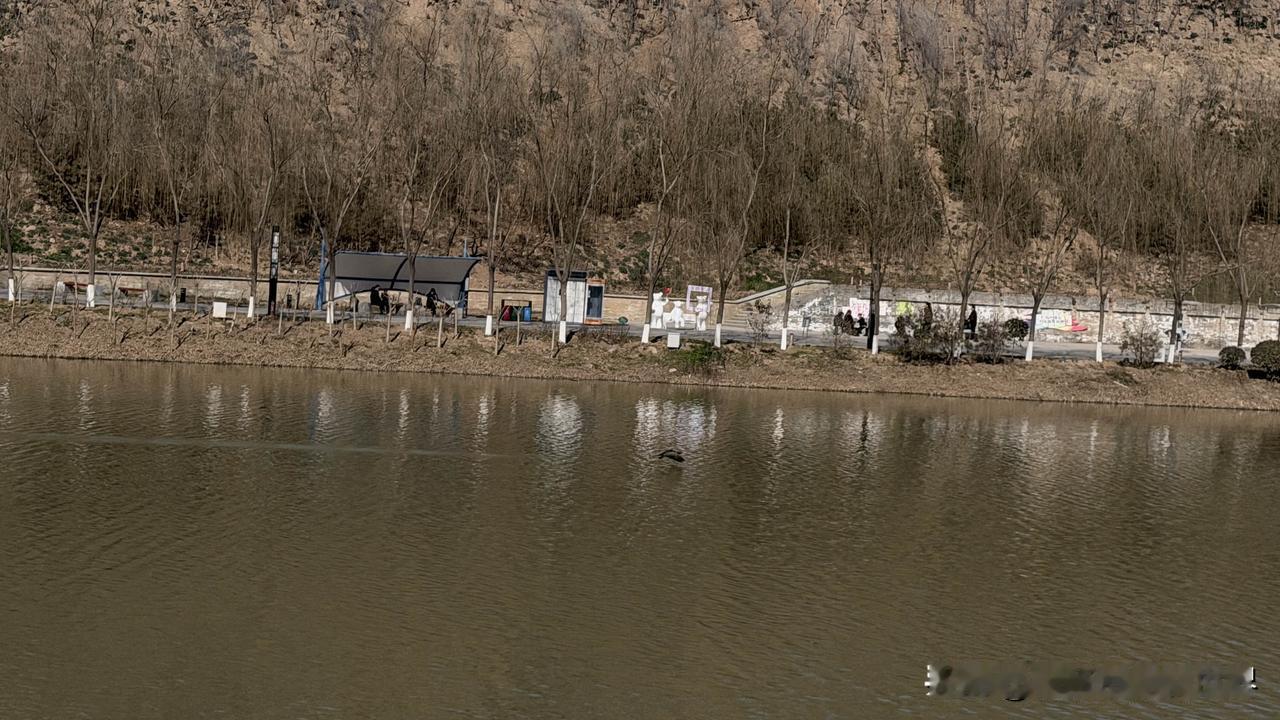 沿着河坡散步,风里还带着点冬的冷峭,但阳光已经有了分量。光秃秃的树林整齐地排列着,像一幅用深褐色线条勾勒的素描,在黄褐色的土坡背景上延伸。 河面泛着沉静的波纹,一只水鸟倏然划过,惊起细碎的涟漪。岸边的步道上,有人在遮阳棚下闲坐,有人慢慢踱步,都在这料峭的春寒里,贪恋着这一点点回暖的温柔。季节正悄然转身,所有蛰伏的生机,都在等待着一个破土的信号。