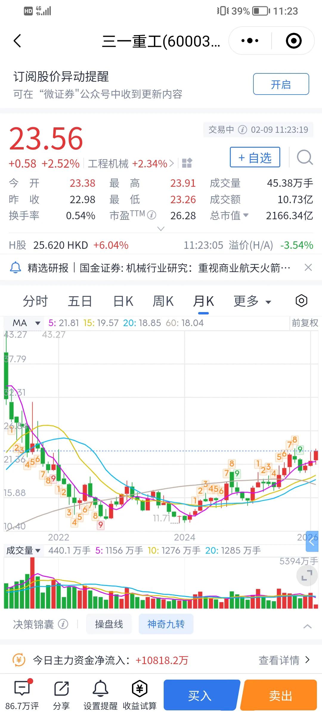 三一重工,看好你了,你是街上最靓的仔。 我在2021年时候以28.14股价买了三一重工100股,经历过三一重工股价从三一变成二一,再从二一变成一一,期间我也很无奈和失落,一时间恨不得卖出,但执着选择了坚守,不忘初心,如今三一重工股价慢慢地抬升,我坚信今年底三一重工股价一定超过三十,实至名归。