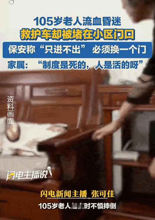 “必须严惩!”1月31日,上海,一105岁老人在家中摔倒,额头严重受伤,流血昏迷,在救护车运送过程中,因小区保安以“东门只进不出”为由,坚持让救护车换个门走,救护车只能绕行,被硬生生耽误5分钟!网友:拿着鸡毛当令箭! 上海一个小区里,有位105岁的老爷子,在家不小心摔了一跤,这一摔可真要命,额头撞得血肉模糊,血止不住地流,老爷子当场就昏过去了,气儿都越来越弱,那场面,任谁看了都揪心。 家属当时都吓懵了,魂儿都快没了,半秒都没敢耽搁,赶紧打120,就盼着救护车能快点来,能给老爷子多争口气。 120一接通,救护车立马就赶过来了,一路上警笛拉得嗷嗷响,司机师傅恨不得飞着去,没一会儿就到了小区东门。 说真的,按最近的路线走,从东门直接开出去,用不了几分钟就能到医院,能多给老爷子省点时间,多一份活下去的希望。 可谁能料到,就在救护车准备开出门的那一刻,小区当班的保安,突然就冲了上来,硬生生把车给拦死了,语气硬得不行,说啥也不让过,就一个理由——小区规定,东门只进不出。 急救人员当时都急疯了,赶紧跟保安解释,说车上拉着一位105岁的老爷子,摔得昏迷不醒,还一直在流血,多耽误一分钟,老爷子就多一分危险,求着他通融一下,破例放他们过去,别耽误了救命的大事。 可不管急救人员怎么说、怎么劝,甚至好话说尽,这保安就是油盐不进,一根筋到底,死认着规矩不放,非得让急救人员绕路,从小区别的出口走。 急救人员也没别的辙,总不能跟保安在这耗着,耽误老爷子的救命时间吧?只能咬着牙,不情愿地放弃从东门走的计划,开车绕去别的出口。 就这一绕,硬生生让这场和死神抢时间的急救,耽误了整整5分钟!这5分钟,平时咱们刷几条短视频、喝一口水就过去了,可在当时,对那位昏迷的百岁老爷子来说,每一秒都是救命的黄金时间,多耽误一秒,就多一分危险。 这5分钟里,藏着家属的崩溃和无助,藏着急救人员的无奈,更暴露了有些人,对生命的漠视,还有执行规矩时的死板和冷血。 这事被曝光之后,网友们的谴责声就没停过,大家说的话不一样,但意思都差不多,全都是冲着这事的离谱之处来的。 有网友气得直骂,说这保安就是拿着鸡毛当令箭,太顽冥不化了,占着岗位不干活,连最基本的同情心都没有,更别说应急处理的意识了,就知道死板地执行规矩,把规矩当成自己偷懒、推卸责任的借口。 还有网友直言,这保安的做法,跟草菅人命没区别,5分钟看着不长,可在急救的时候,差一分钟,都可能阴阳两隔,他的冷漠和死板,说白了,就是不把人命当回事。 这次的事里,这位保安的做法,不光违反了相关的规定,更忘了自己干这份工作的初心。 还是他自己认知太浅,责任意识太差,根本不知道自己的岗位职责是什么,不知道什么事该变通,什么事是底线。 信息来源:闪电新闻