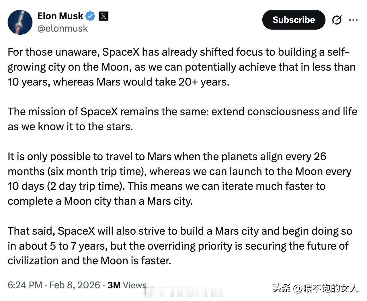 服不服?就问你们服不服? 马斯克要准备在火星上建造城市了。这就是想象力和创造力啊。要不要去跟他竞争一下,就那点地方去晚了就没了。有英语很厉害的吗?给大家翻译一下,这段英文比较长。重点意思就是他接下来的工作目标要在火星上建造城市。😄[捂脸]