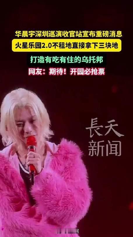 2026年2月8日,华晨宇在深圳演唱会收官站宣布,已在一处四季如春之地拿下三块永久用地,将打造“火星乐园2.0”,为粉丝构建专属“家”。这一项目涵盖演出、娱乐、居住功能,实现从租地演出到自建乐园的跨越,引发粉丝狂喜。成都华晨宇