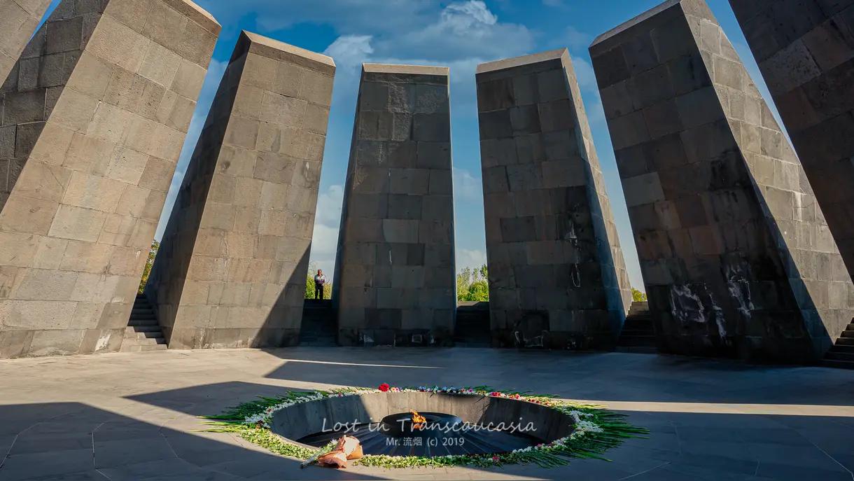 【飞虎历史回望380】 亚美尼亚种族灭绝博物馆暨纪念碑位于首都埃里温,纪念碑建于1967年,博物馆1995年开放,用于铭记1915—1916年奥斯曼帝国对亚美尼亚人的种族灭绝,有约150万人被害。建筑以44米裂峰方尖碑、十二块围廊石与长明圣火为核心,象征民族创伤、集体哀悼与不屈重生。每年4月24日全国举行公祭,以此铭记历史、警示世人、守护人权与和平。