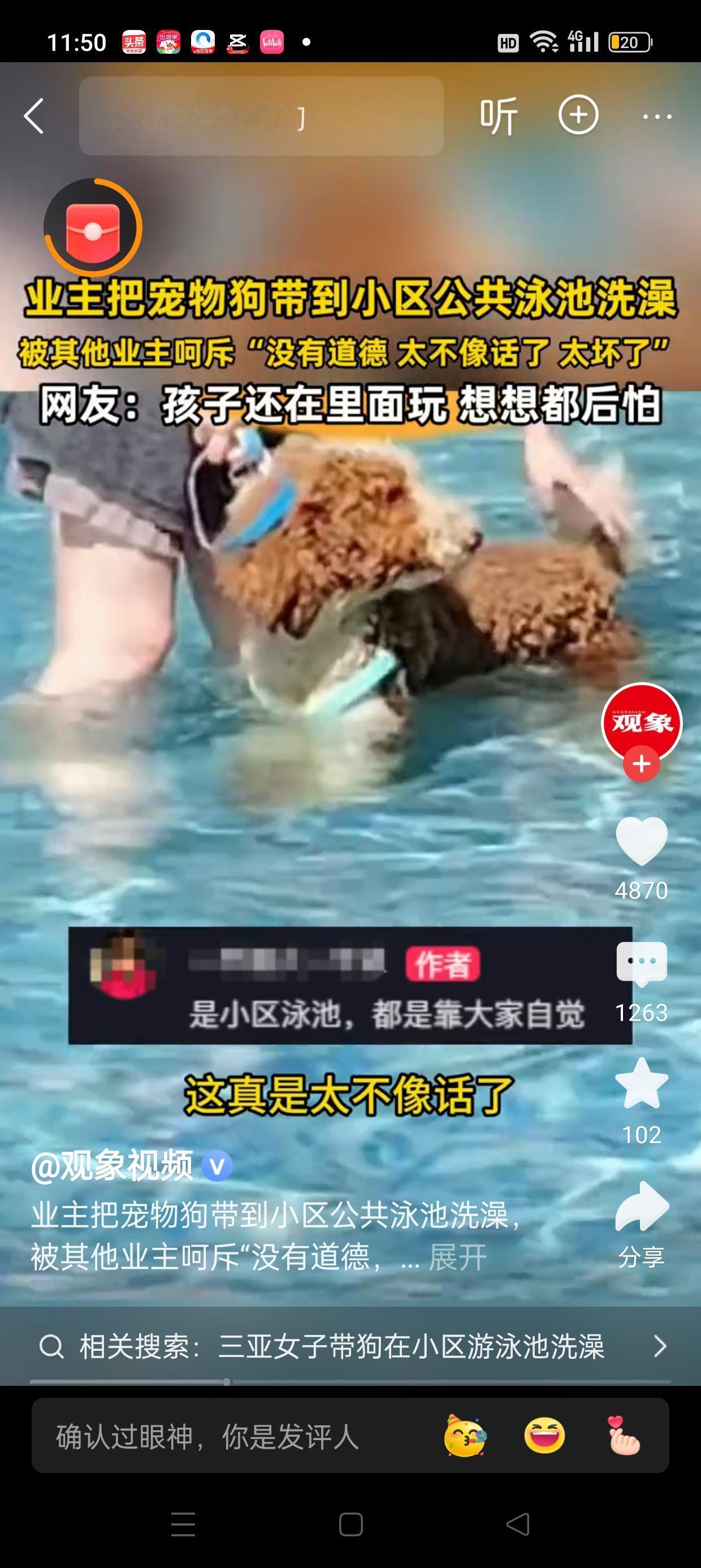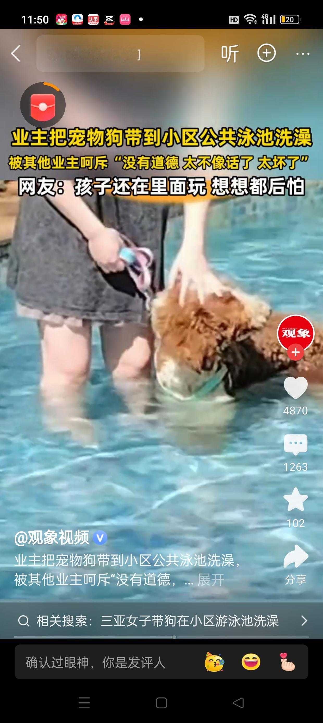 在阳光明媚的三亚,小区的公共泳池平日里是居民们休闲娱乐的好去处。然而,近日发生的一幕却在社区里引起了不小的争议。一位业主带着心爱的宠物狗,试图在泳池里为它洗澡,这一举动引发了邻居们的强烈反对。 那天,业主李先生带着金毛寻回犬走到泳池边,准备给爱犬洗澡。只见他熟练地将狗狗引入水中,用宠物专用洗发水轻轻揉搓。水珠在阳光下飞溅,狗狗摇着尾巴,显得非常享受。然而,周围的邻居们纷纷皱起了眉头,有人惊呼:“这里是公共泳池,不是宠物洗澡的地方!”有人担心宠物的毛发和泡沫会污染水质,更有人担心宠物在水中可能会影响其他游泳者的安全。 随着李先生坚持要为宠物洗澡,反对声逐渐升高。一些居民提出建议,希望能在指定的宠物专用场所进行洗澡,而不是在公共泳池中。有人担心宠物的体味、毛发甚至可能带来的细菌,会影响到其他人的健康和体验。 最终,社区管理人员出面调解,建议宠物主人们尊重公共空间的使用规则,避免在泳池中为宠物洗澡。尽管如此,这一事件也让大家反思公共空间的合理利用和宠物权益的平衡。 这场争议,既体现了居民们对公共环境的关心,也提醒我们在共享空间中,要尊重彼此的权益。宠物是家庭的重要成员,但我们也需要共同维护一个干净、安全、和谐的居住环境。