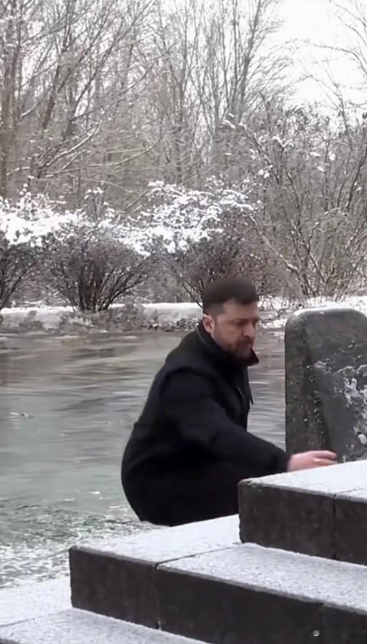 冰天雪地中,泽连斯基深切的悼念为国牺牲的乌克兰官兵! 四年来,这种场面真多呀!泽连斯基默默的闭着眼睛,也许他在想如何捍卫乌克兰的主权,如何牺牲的官兵复仇……。