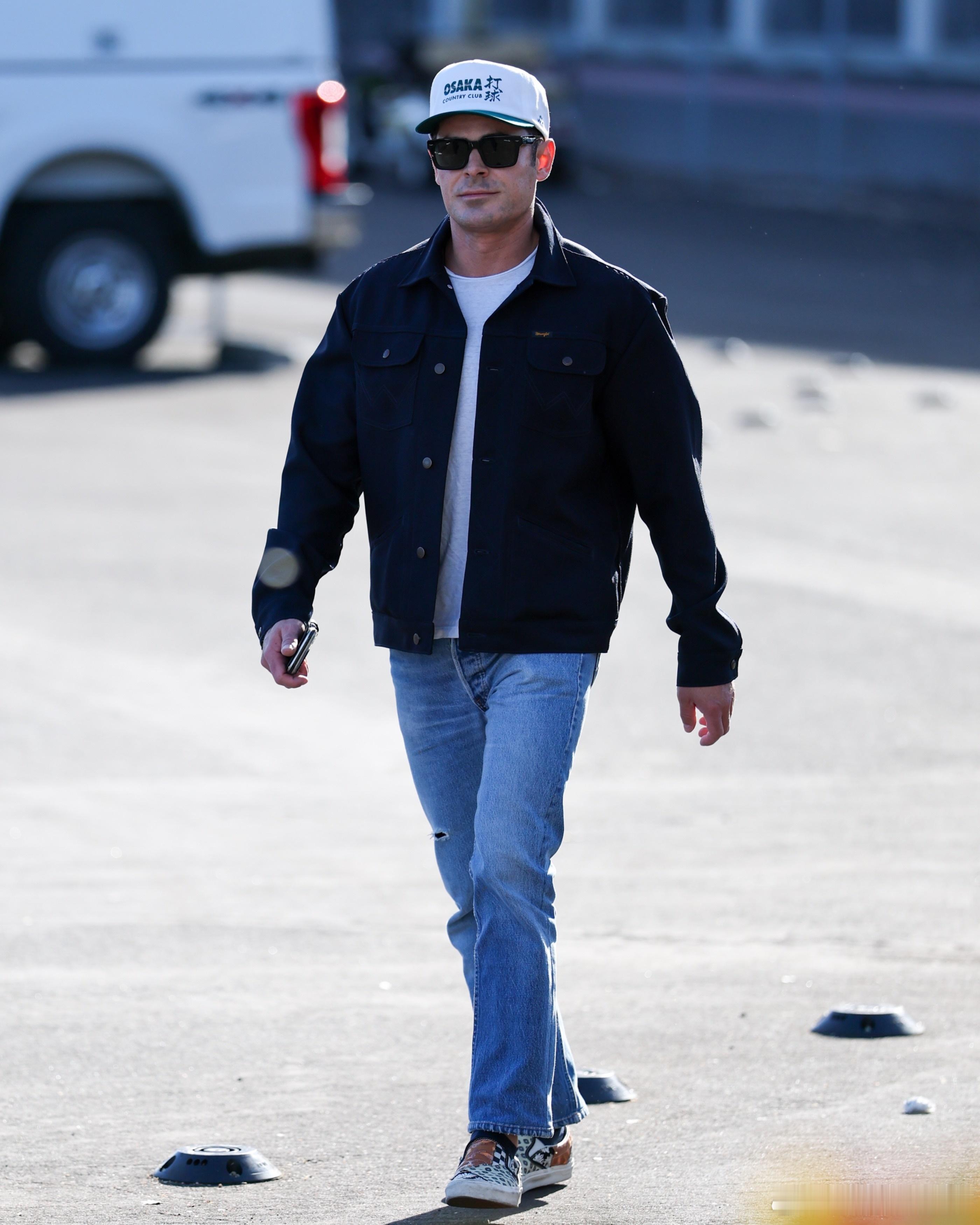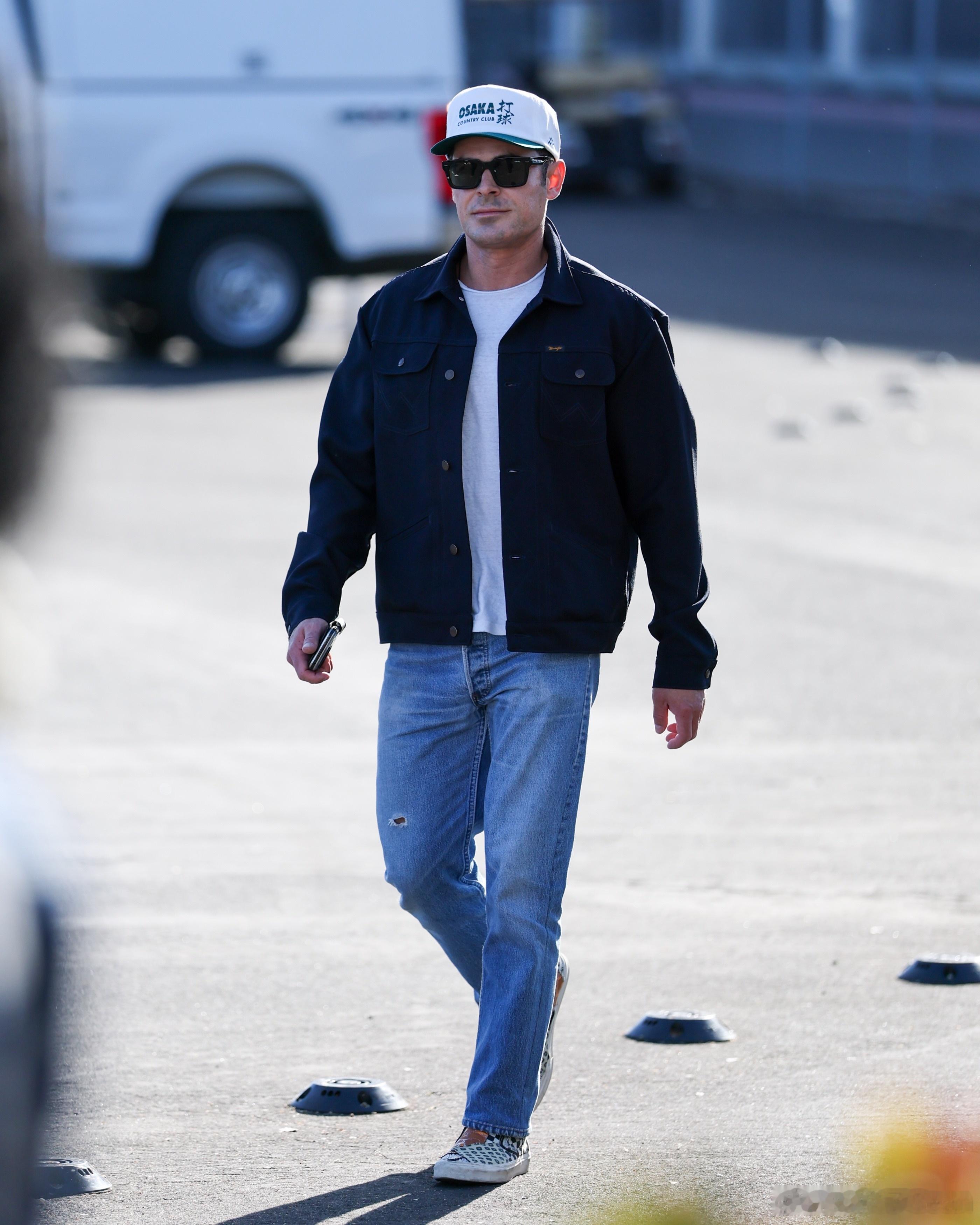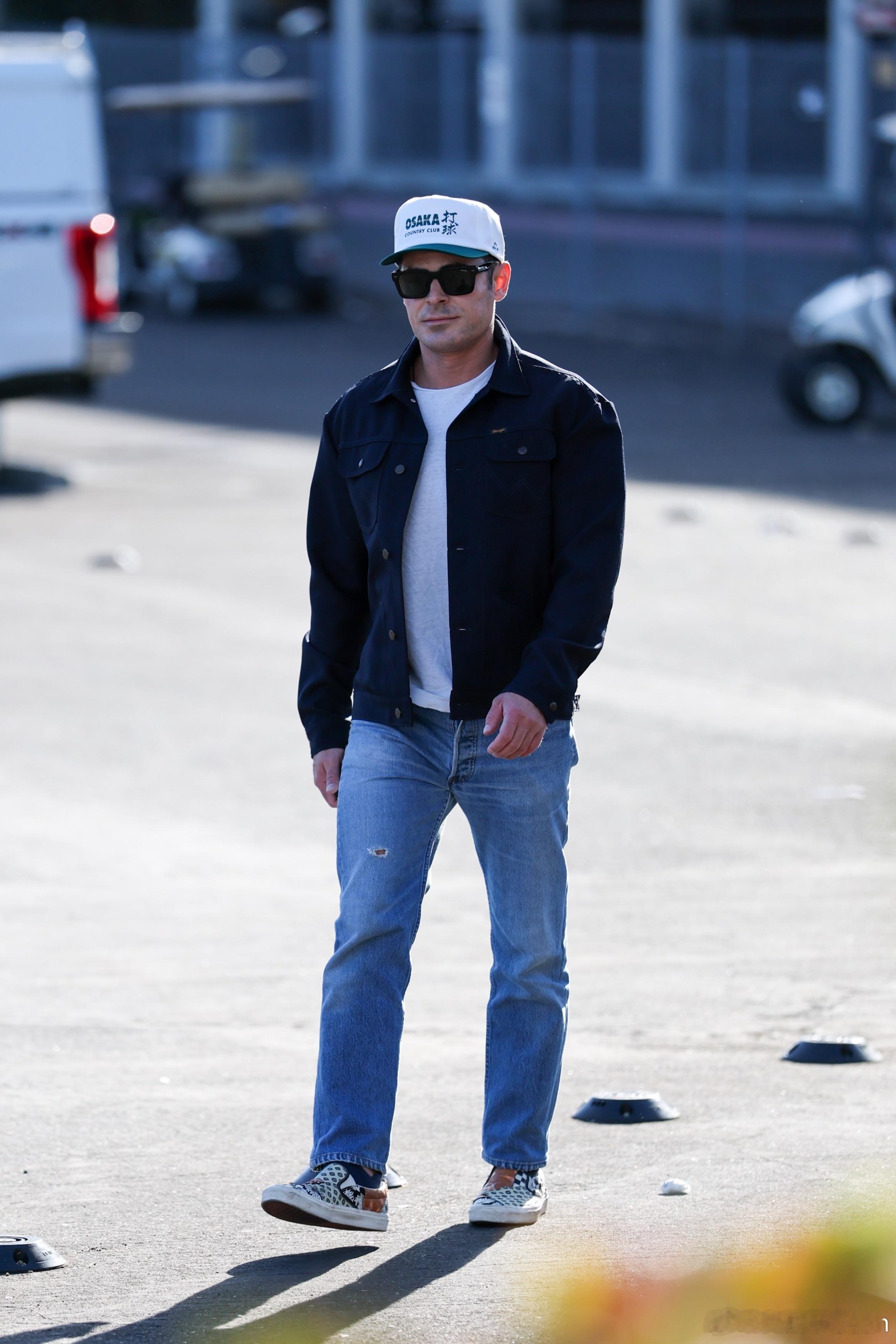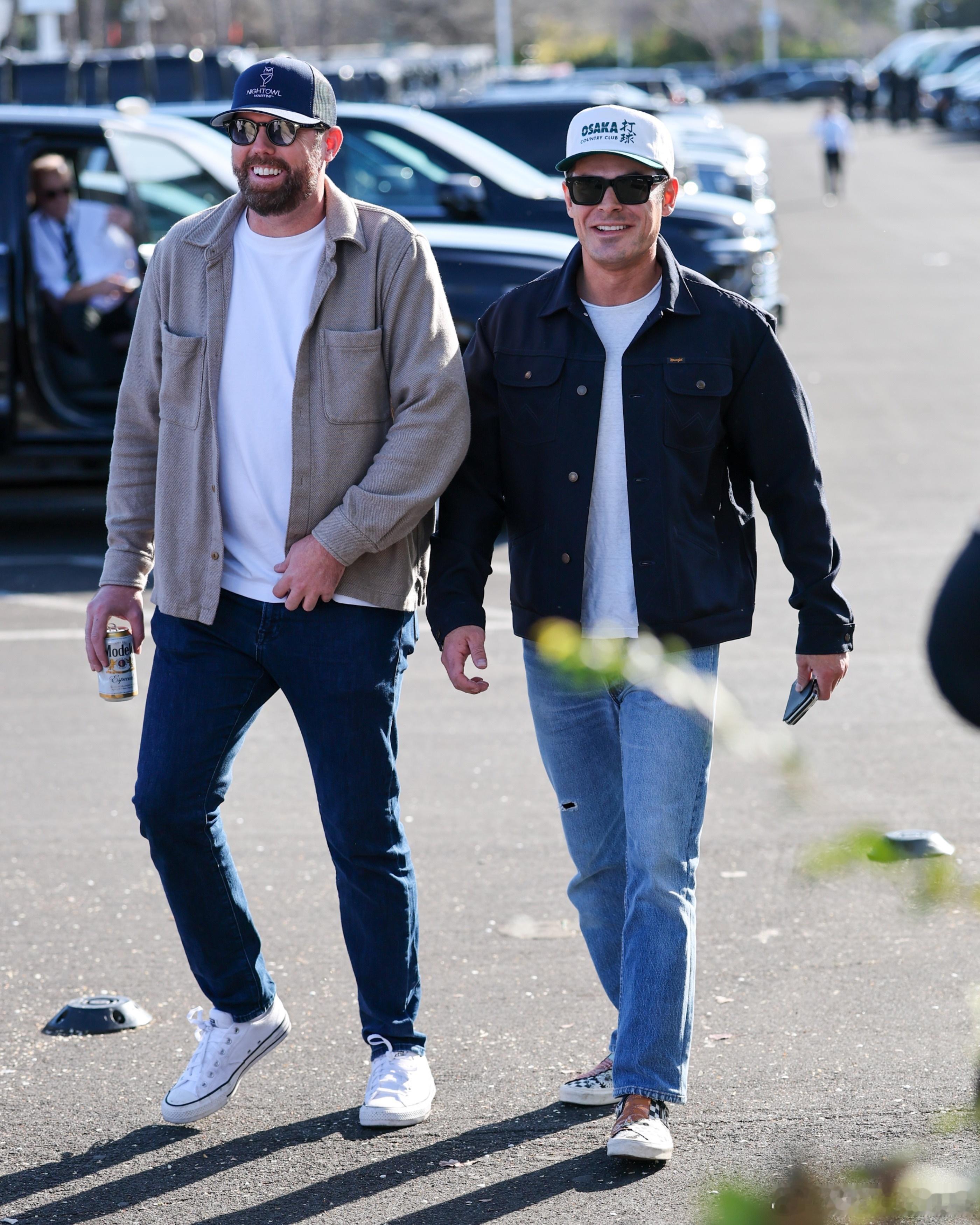 zac efron扎克埃夫隆在旧金山外出,戴着那顶Osaka打球的鸭舌帽前往观看超级碗比赛