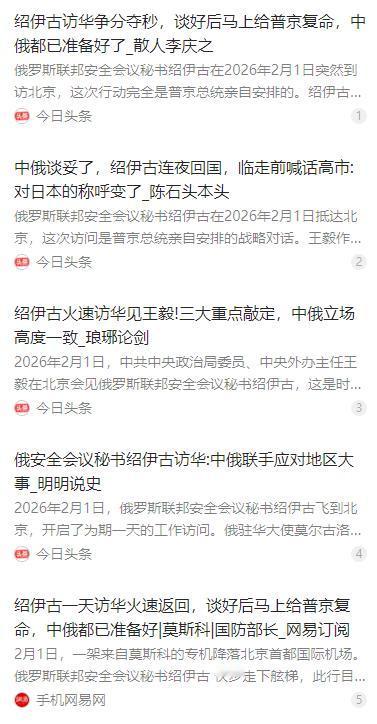 绍伊古火速访华,很多人以为这只是常规的战略对表,谈谈军演。错!真相是:莫斯科的“后院”起火了,新德里不仅反水,还狠狠插了一刀! 麻烦看官老爷们右上角点击一下“关注”,既方便您进行讨论和分享,又能给您带来不一样的参与感,感谢您的支持! 2026 年 2 月 1 日,俄罗斯联邦安全会议秘书绍伊古闪电访华,外界普遍解读为常规战略对表、磋商联合军演,这种看法明显低估了此行的紧迫性。 此次访问并非例行安排,而是俄罗斯面对外部战略环境突变,寻求与中国深化协作的紧急行动。印度的战略转向,直接冲击俄罗斯能源与安全布局,成为推动此次访问的关键诱因。 2026 年 2 月初,美国与印度达成贸易与能源协议,印度承诺逐步缩减俄罗斯石油进口,以此换取美国大幅下调输美商品关税。印度作为俄油重要买家,这一调整给俄罗斯能源出口带来明显冲击。 印度逐步减少俄油采购,将导致俄罗斯油气收入明显下滑。为弥补市场缺口,俄罗斯必须加快能源出口东移,把更多原油与天然气转向亚太市场,中国成为最核心的承接方。 绍伊古此次访华,核心议题之一就是推动中俄能源合作提速扩容,协商扩大对华原油、天然气供应规模与长期供应稳定性,用东方市场对冲西方与印度方向的损失。 双方还就地区安全热点深入交换意见,针对日本 2026 财年防卫预算再创新高、军事动作持续加码等情况,中俄一致认为应共同维护地区和平稳定与战略平衡。 俄方在会谈中再次明确恪守一个中国原则,在台湾、涉港、涉疆等问题上坚定支持中方核心利益,体现出中俄全面战略协作伙伴关系的高度互信。 此次高层会晤也为 2026 年 11 月深圳 APEC 领导人非正式会议期间的中俄元首交往做好铺垫,提前对接立场、协调议程,确保高层会晤顺利推进。 绍伊古紧急访华,标志着俄罗斯 “向东看” 战略进入更务实阶段,在西方持续施压、传统伙伴出现摇摆的背景下,坚定深化对华协作成为俄罗斯的战略优先项。 此行表面是安全沟通与军演磋商,实质是俄罗斯应对地缘变局的战略调整。印度转向带来的压力,倒逼俄加快能源东移与安全协作,中俄合作由此进入更紧密的新阶段。