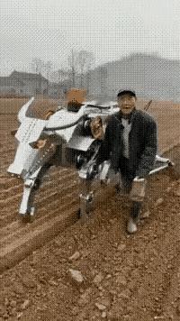 这是真正的铁牛,在我们小的时候,农村把拖拉机叫做铁牛,现在真有人打造出铁牛,拉着耕犁耕地,不用吃草、不用吃料的,工作效率也可以。以前农村耕牛耕地,有的地比较硬,一头牛根本就拉不动,需要用两头或三头牛一起来拉,这样的活我都干过,当时在农村种地真是很苦的活啊!