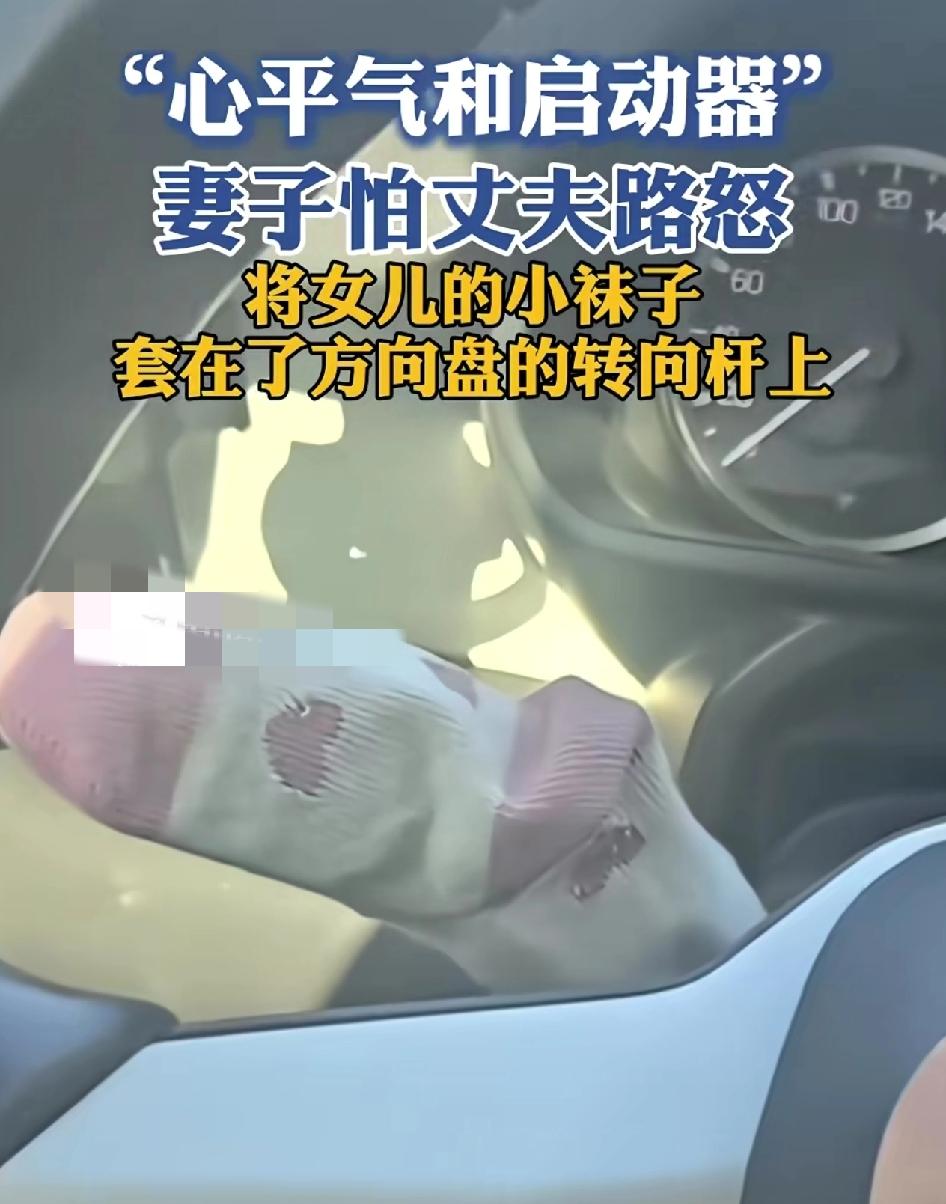 内蒙古一位妻子为了让出门在外的丈夫开车时避免路怒症,细心的将小女儿的袜子套在了。车辆的启动器上,希望他急躁的时候,看着女儿的袜子会更温柔的对待一切。网友们说,其实路怒症都是身边的事物,所影响的,有时候,退一步,真的可以海阔天空。也真的,难得身边有这样的妻子为他细心的着想。