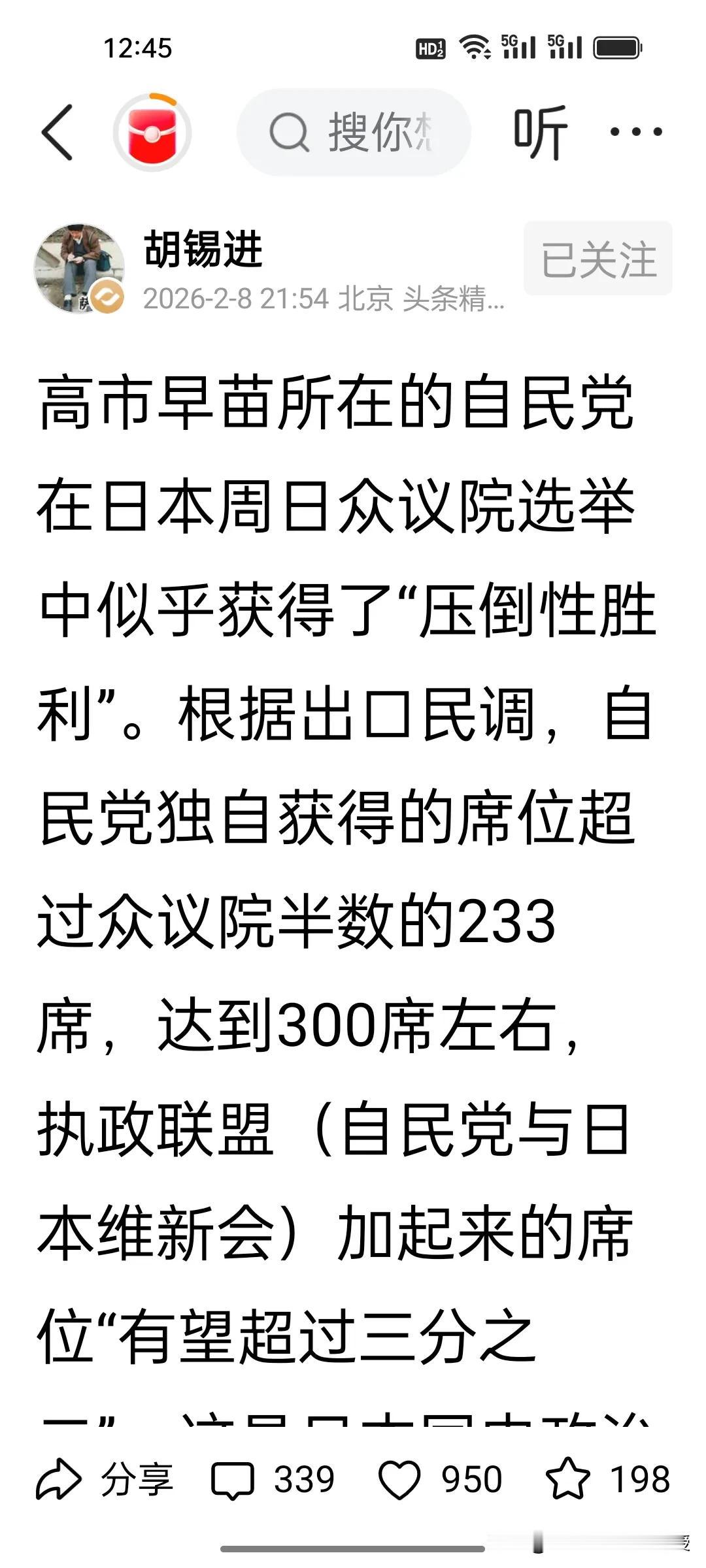 胡锡进怒批高市早苗:这个“搅屎棍”想把日本拖向何方? 胡锡进发长文对高市早苗一点不客气,直接称她为“搅屎棍”!说她成不了有着“铁娘子”之称的撒切尔夫人。在老胡看来: 1. 高市早苗的胜选不是日本民意,只是极右翼和保守派的“政治赌局”。 2. 她的上台将让日本在修宪扩军的道路上越走越远,严重威胁地区安全。 3. 她背后的资本和右翼势力,正在把日本变成“亚洲的火药桶”。 4. 这种短视的政治操作,最终只会让日本付出沉重代价。 高市早苗的野心早已昭然若揭,而日本民众真的愿意为她的冒险买单吗?冬日生活打卡季