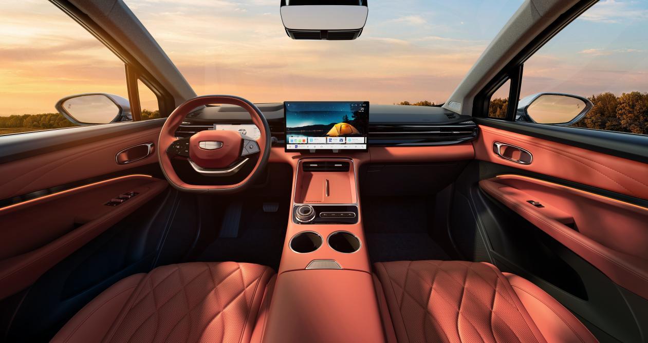 内饰极简环抱布局,8.8英寸仪表+14.6英寸中控屏,带电子怀挡和50W无线快充,保留了部分物理按键。主副驾座椅加热通风+按摩,后排放倒成1.93米大床,头顶带1.5㎡全景天幕。具体配置、价格和上市时间,后续会通知。