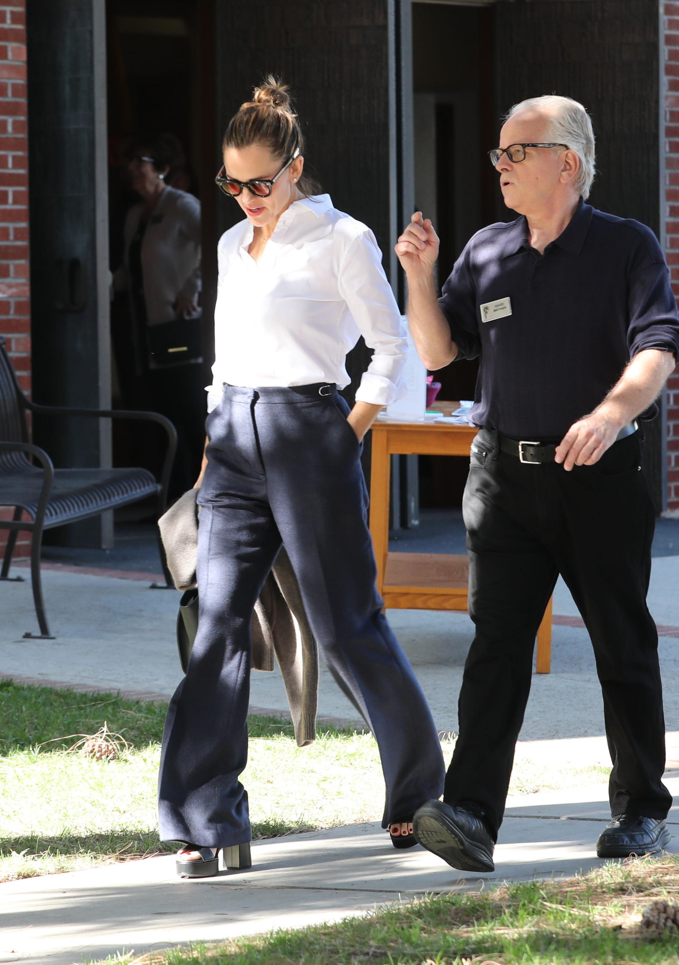 Jennifer garner詹妮弗加纳在圣莫尼卡外出,加纳姐穿上白衬衫和高腰西装裤,很有职场boss风范