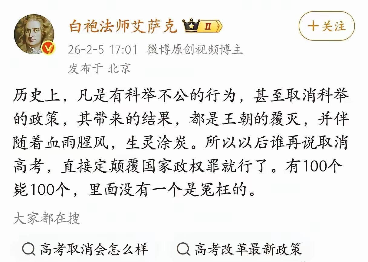 中国最公平的选拔人才和考试就是高考,谁想取消高考,绝对是坏蛋,动摇国之根本,没安好心。