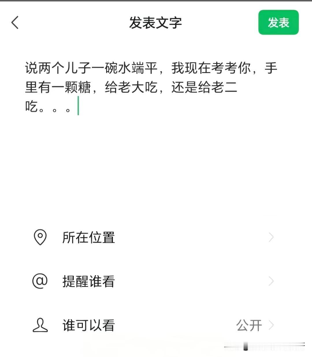 如果你有两个儿子,你真的能做到一碗水端平吗? 做为父母都想着不能区别对待自己的孩子,别说两个儿子了,就算一个儿子一个女儿都想平等对待。就不说买车买房的支持,往小了说,你手上只有一颗糖,你会给老大吃还是给老二吃? 两孩子差别 为人父母