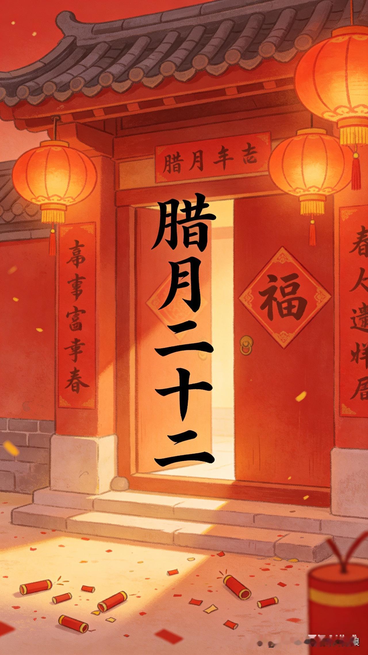 我的今日状态:😁轻松愉快 我这里的天气:☀️晴天 腊月二十二,年味儿愈浓,万事皆备 腊月二十二,年味浓到家门口~老辈传下的俗礼件件落实处,扫屋檐擦门窗,掸去一年尘与霉;理炊具洗瓷碗,备好锅灶待团圆;米面油盐囤整齐,糖果干果挑新鲜,件件都是迎新年的欢喜。 二十二扫房檐,二十三祭灶仙,日子一步步迈向除夕,人间烟火气,岁岁皆安康。愿新年,事事备,年年顺,家人闲坐,灯火可亲✨ 腊月二十二 腊月二十二年俗 图片由AI生成