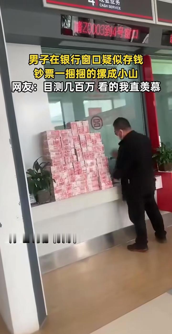 河北一男子银行存现金,钞票堆成小山,网友:这才是“财富自由”的样子 2月6日,河北一家银行网点里,一男子存现金的视频刷爆网络。 视频中,成捆的百元大钞在柜台上堆成了小山,目测金额高达数百万。工作人员正有条不紊地清点,引得路人纷纷驻足侧目。 这一幕让无数网友酸了:“这才是真正的安全感”、“别人的存款,我的梦想”、“感觉他存的不是钱,是我下辈子的奋斗目标”。 也有网友理性分析,这么大的现金交易,大概率是合法经营的货款,普通人还是踏踏实实搬砖吧。 不管怎样,这“钞能力”现场,属实给大家开了眼! 现金存款