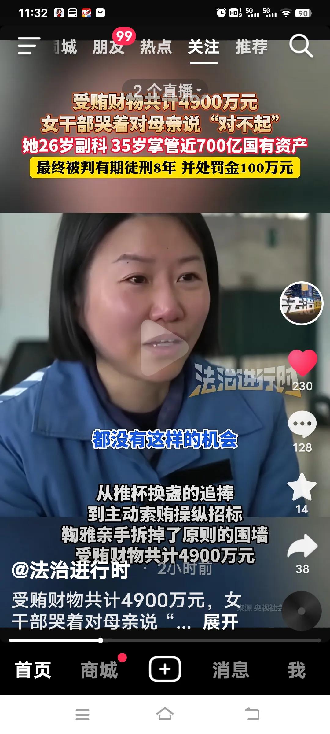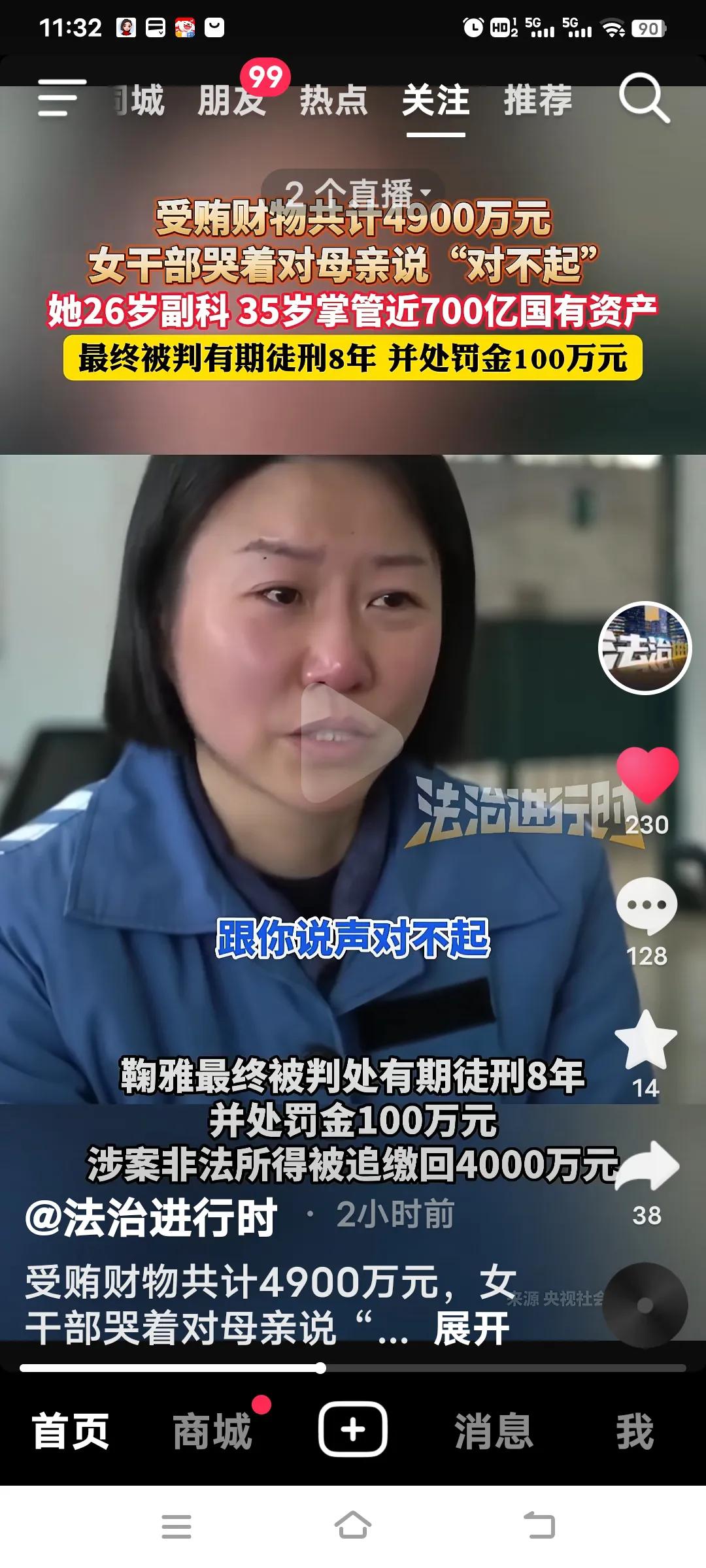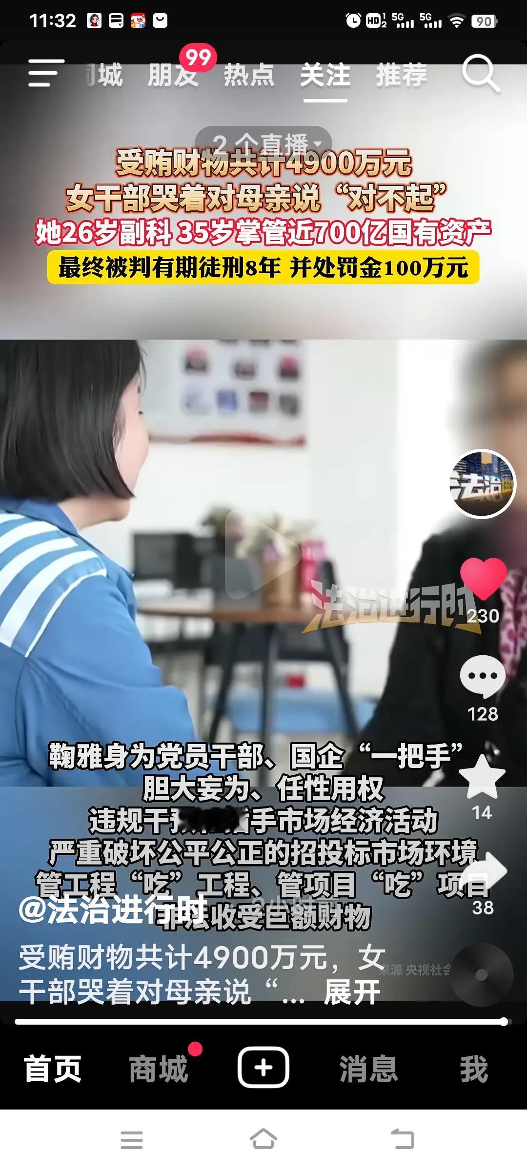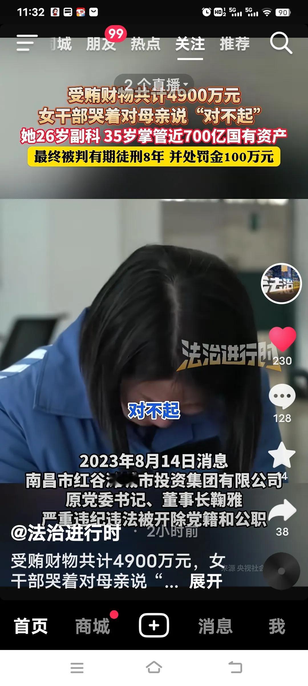 35岁掌控700亿国企,女掌门受贿4900万终悔悟! 2月8日,央视《警钟长鸣》披露的鞠雅贪腐案引发广泛关注。这位四川大学的高材生,26岁就实现副科级“火箭式晋升”,35岁成为资产近700亿国企的“一把手”,本是家族的骄傲、“年轻有为”的典范。 2023年8月14日消息,鞠雅身为南昌市红谷滩城市集团投资有限公司党委书记、董事长,国企“一把手”,她胆大妄为、滥用职权,违规干预和插手市场经济活动,严重破坏公平公正的招投标市场环境。她在管理工程、项目的过程中迷失自我,将审批权据为己有,5年间受贿达4900万。从享受饭局上的追捧,到主动索贿、操纵招标,她亲手践踏原则。最终,她被判处8年有期徒刑,并处以100万罚金。 4000万非法所得被依法追缴。镜头前,她哽咽着向母亲说“对不起”,摘下党徽时,“心里像被撕开一般”。评论区有网友议论,她并非真的知错,而是贪来的钱母亲还没来得及享受,她就身陷囹圄了。 这件事给大家上了生动的一课,平凡的日子才是真正的幸福。话又说回来,面对与钱财打交道的工作,换作旁人或许也会心生贪念,难道不是吗?正所谓“常在河边走,哪有不湿鞋”!女财务挪用公款 央企贪腐 女老板贪污
