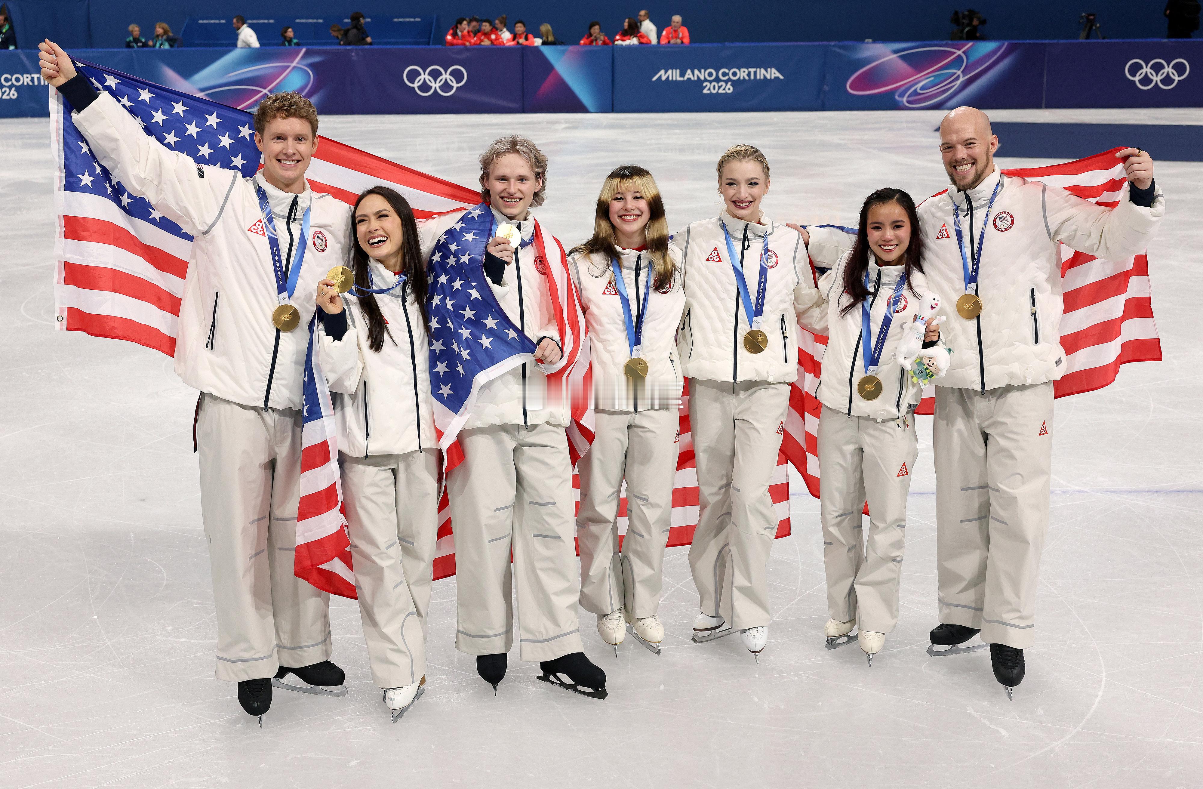 米兰冬奥会花样滑冰团体赛决赛🇺🇸美国队69分以1分险胜卫冕,成首支蝉联该项目奥运冠军的队伍🇯🇵日本68分再获银牌🇮🇹东道主意大利60分摘铜,创历史💪🏻米兰冬奥会冬奥会