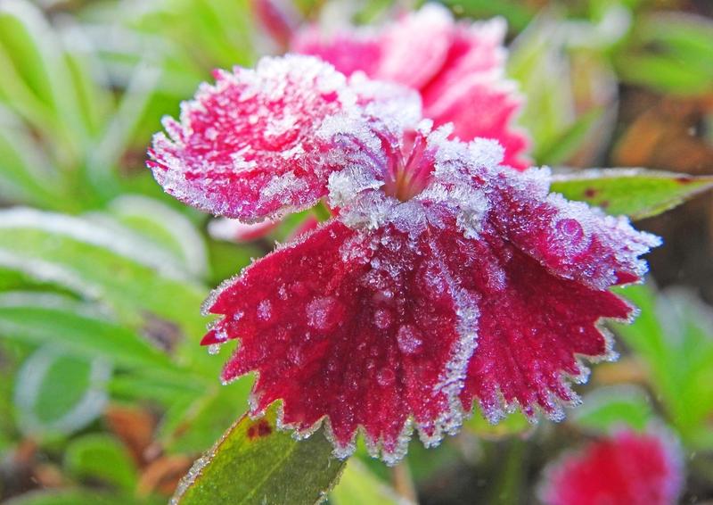 檐角的霜被晨光吻得渐渐消融,冰晶顺着叶脉滑落,凝在桃苞上,莹得像粒小珍珠。风拂时,花枝轻轻颤,飘飞的霜星沾在粉苞上,粉白相映,清雅又温柔,像帧刚从锦缎上裁下来的景。
