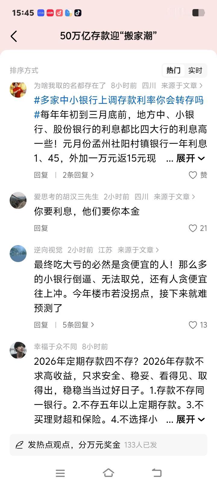 50万亿存款大迁徙!你的钱还在大行“躺平”吗?山西贵州等地银行利率破2%真相,普通人这样存多赚一部手机! 春节刚过,无数家庭主妇、退休老人和精打细算的上班族,突然发现自己三年前锁定的3%定期存款到期了。兴冲冲跑去银行续存,却被告知利率只剩1.5%出头,收益几乎腰斩。一股无声的焦虑,正在全国储户中蔓延。这不是个例,而是一场涉及50万亿巨资的集体抉择。 就在六大行纷纷下架高息产品,三年期大额存单利率普遍跌破1.8%之时,地图上一些不起眼的地方却亮起了“利率灯塔”。贵州息烽农商行三年期存款利率喊出2.05%,山西、湖南等多地中小银行紧随其后,小幅上调利率。同一片天空下,存款市场已然冰火两重天。 为什么这些中小银行敢“逆势加价”?核心只有两个字:生存。每年一季度是银行“开门红”关键期,大行根基深厚,而中小银行网点少、品牌弱,全靠本地储户支撑。它们如同毛细血管,更需要血液(存款)流动。尤其年初居民取现需求大,它们不得不拿出更有诚意的价格,打响存款保卫战。 更深层的原因,是2022年至2023年那批利率在3%左右的高息定期存款,正迎来集中到期潮。规模估计高达50万亿以上。这笔巨款如同洪流,正在寻找新的去处。中小银行若不在此刻“筑坝引流”,客户和存款就可能永久流失。这场利率的小幅上调,本质是一场精准的客户争夺战。 然而,高利率能持续吗?理性告诉我们,这很可能只是“昙花一现”。银行的利润来源于存贷利差,而目前行业平均净息差已压至历史低位。中小银行长期高息揽储无异于饮鸩止渴。仔细观察,这些高息产品多设有限额、限时门槛,正暴露了银行“短期冲刺、不可持续”的真实意图。 对我们普通储户而言,最关键的问题来了:该心动行动吗?首先必须破除“小银行不安全”的迷思。只要该银行参与了存款保险制度,50万元以内的本息由国家兜底,安全无虞。关键在于金额,而非银行大小。 其次,务必让存款期限匹配你的用钱计划。如果一笔钱两三年内确定不用,那么抓住这个窗口锁定中期高息,是明智之举。但务必看清提前支取规则,别让急需用钱时利息化为活期。反之,短期可能要用的资金,则应以流动性优先,切勿贪图高息反被套牢。 存款利率长期下行已是不可逆的趋势。眼前中小银行的利率“小阳春”,是周期与竞争碰撞出的短暂火花。它提醒我们,理财需要更敏锐的嗅觉和更理性的规划。你的每一分钱,都值得被更妥善地安置。 (来源:综合自财联社、证券日报等公开媒体报道及多家银行官方公告) 存款搬家潮 利率真相