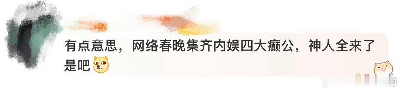 网络春晚集齐内娱四大癫公是谁把这四位“活宝”凑一块儿的?丁真的天然萌、井胧的气氛嗨、沙一汀的反差萌、武艺的闯祸魂,光想想后台互坑名场面就够笑到小年夜,这阵容简直是快乐密码本!