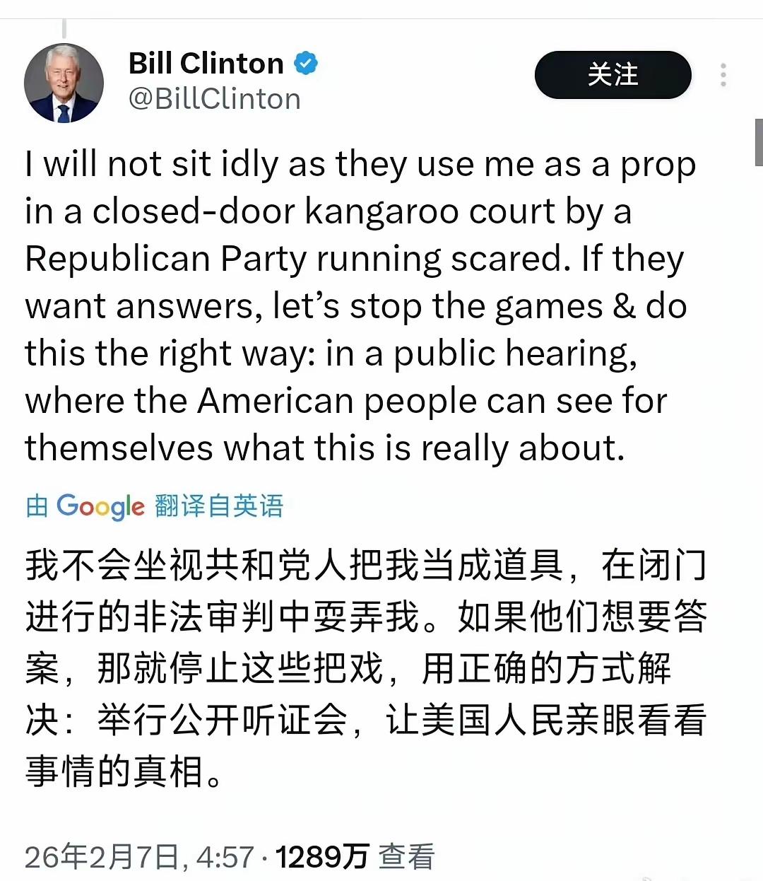 既然退无可退,那就同归于尽! 克林顿希拉里夫妇深陷萝莉岛事件,被逼得无路可退。现在急眼了,赤膊上阵,既然你不让我体面,那就鱼死网破,同归于尽。 你让我们作证可以,那就公开听证,谁都别想暗箱操作,全部拿到聚光灯下说,一个都别想跑! 这两口子都不是善茬,看来共和党也不妙啊!大家猜猜,共和党谁最害怕揭锅盖?