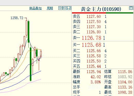 周一, 黄金期货主力合约 止跌回升,再度收红上涨。 未来如何运行概率比较大? 看下主力合约的日线看。 从图中,可以看出。 虽然这几天震荡运行, 但是依旧处于上周一大阴线的包围中。 黄金盘面也在上攻十日均线, 这几天不断反弹走强。 通过这个图,可以简单看出: 黄金有望继续反弹上涨, 关注1150--1160压力情况!