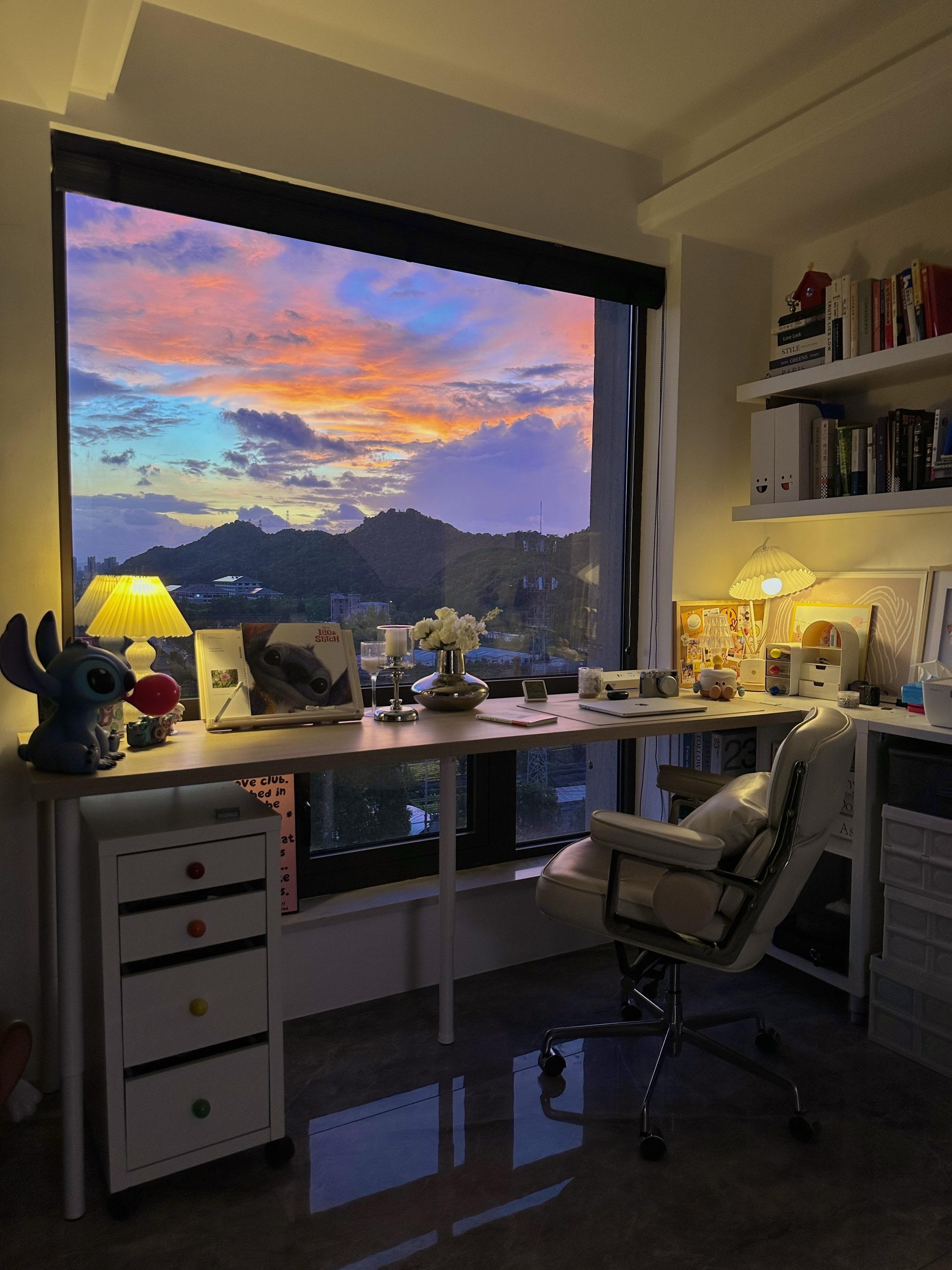 我家房子基础 窗景就不基础。雨后的卧室真的好治愈 晚霞和晚风是家最好的...