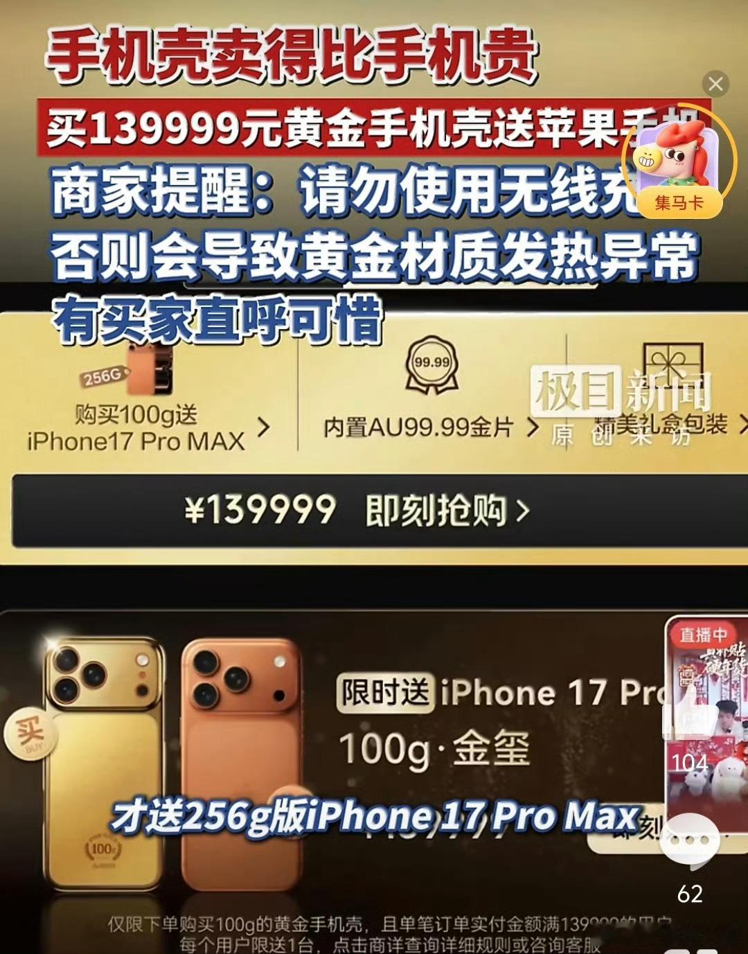 买139999元黄金手机壳送iPhone能买这个手机壳的送不送iPhone已经无所谓了