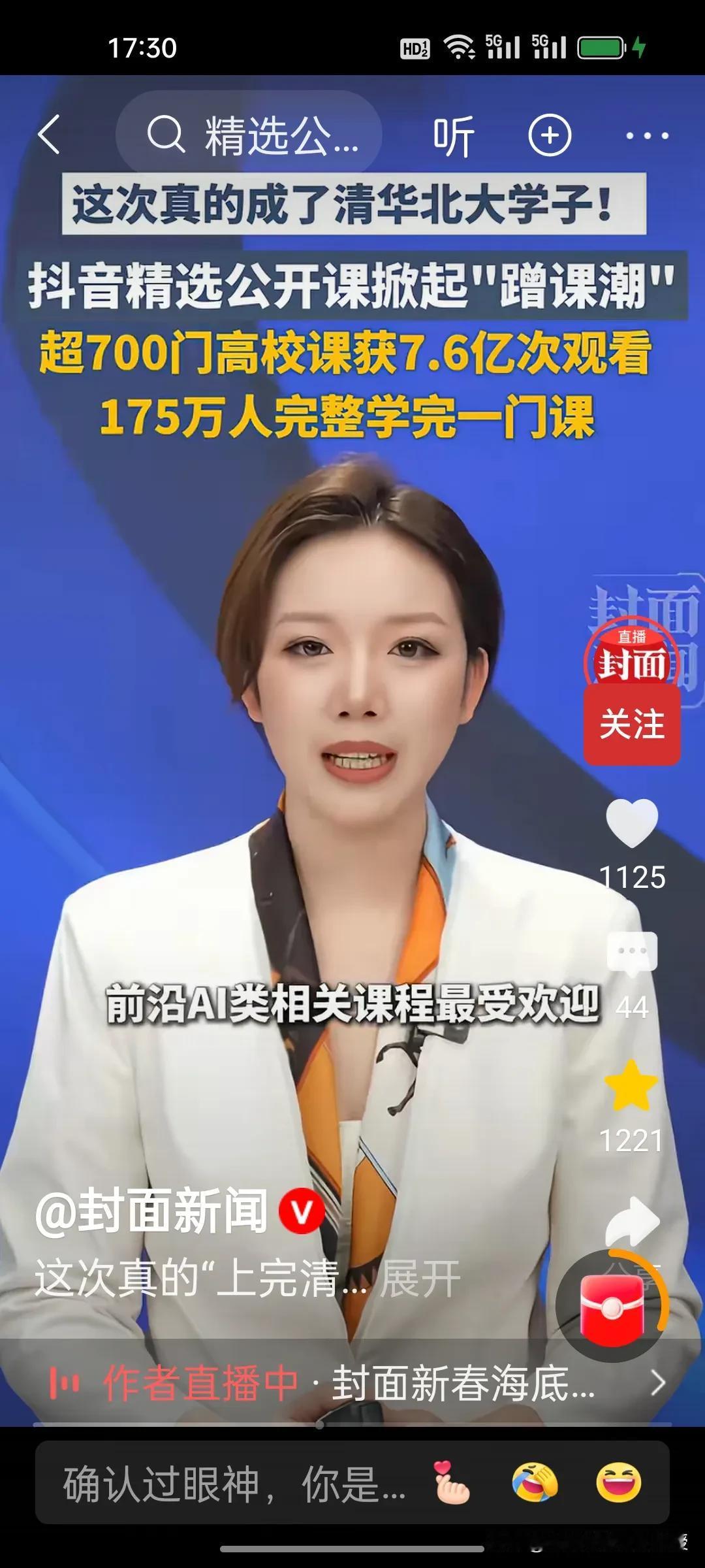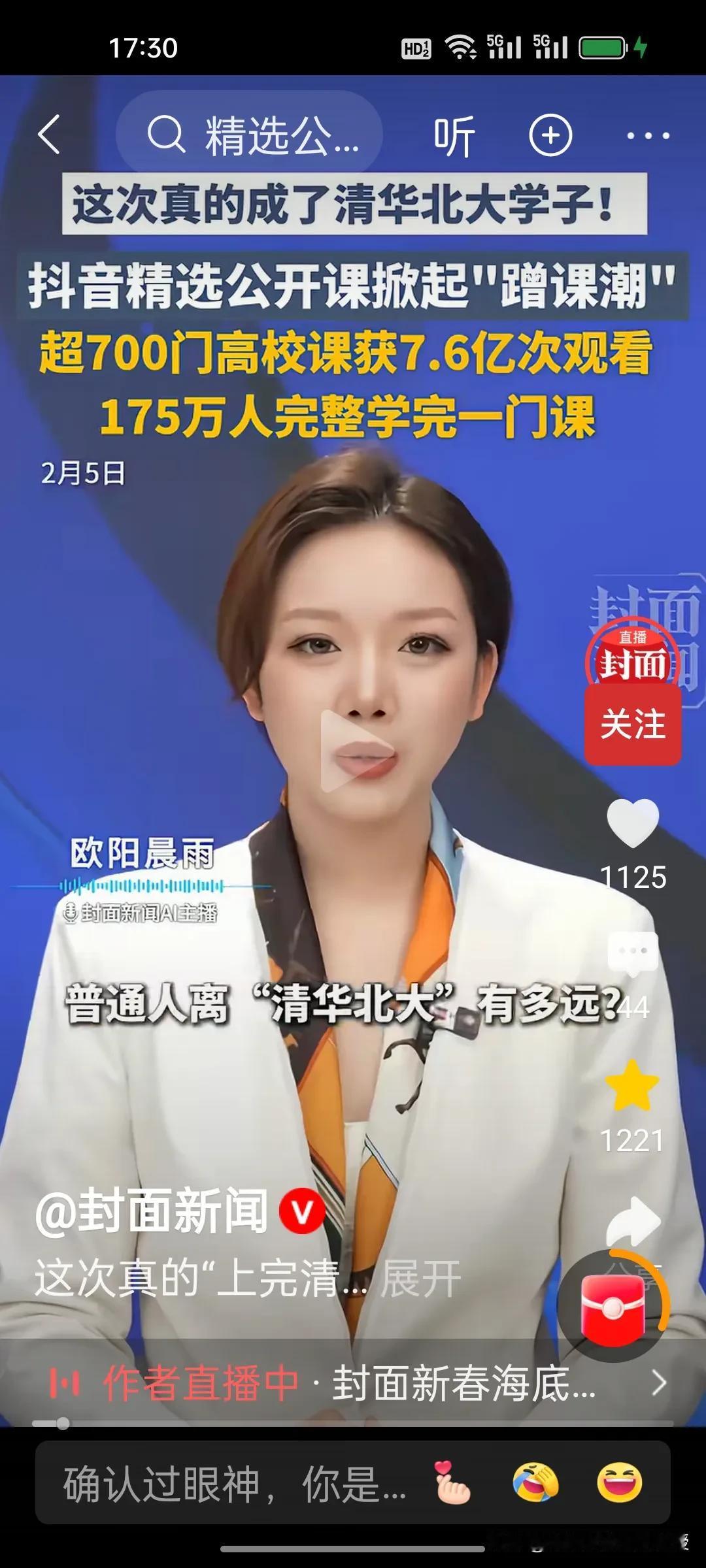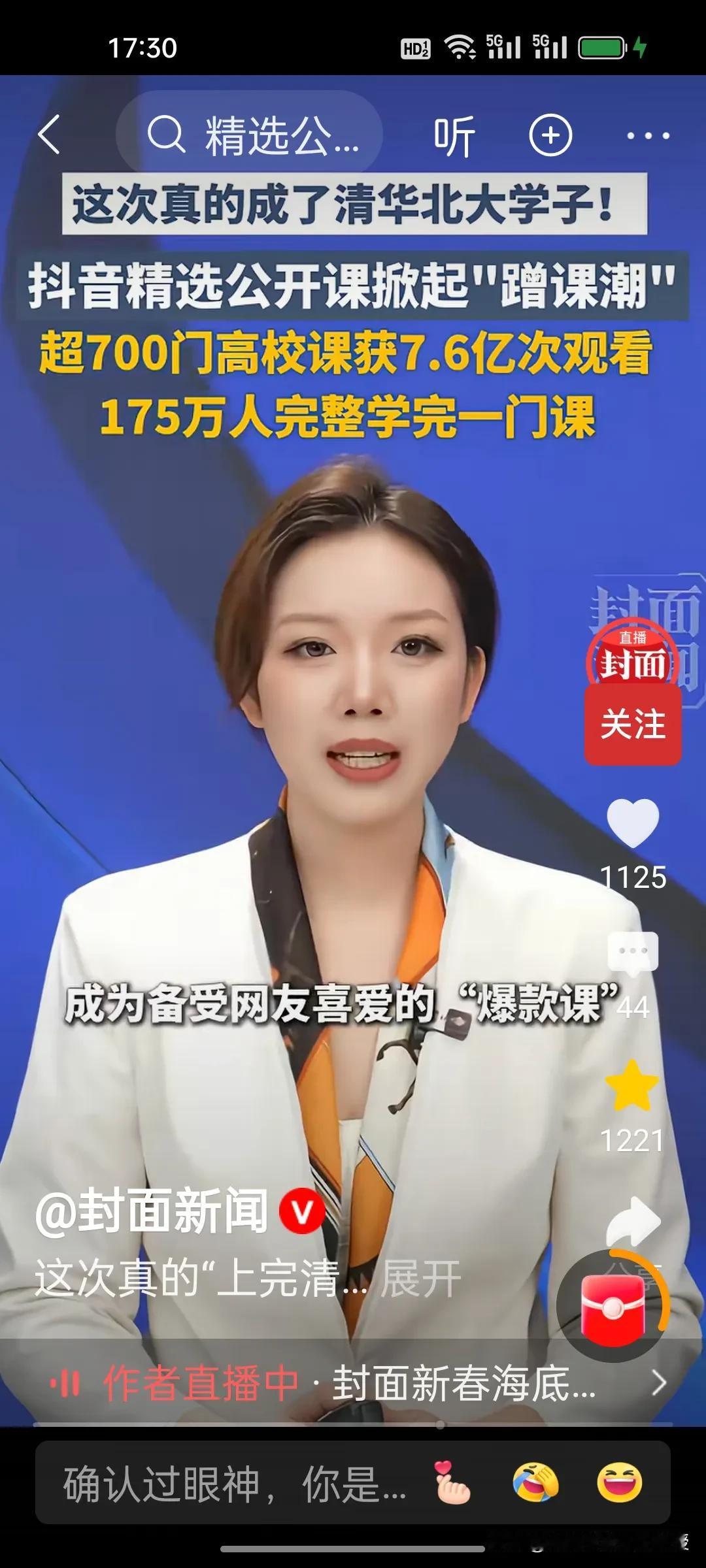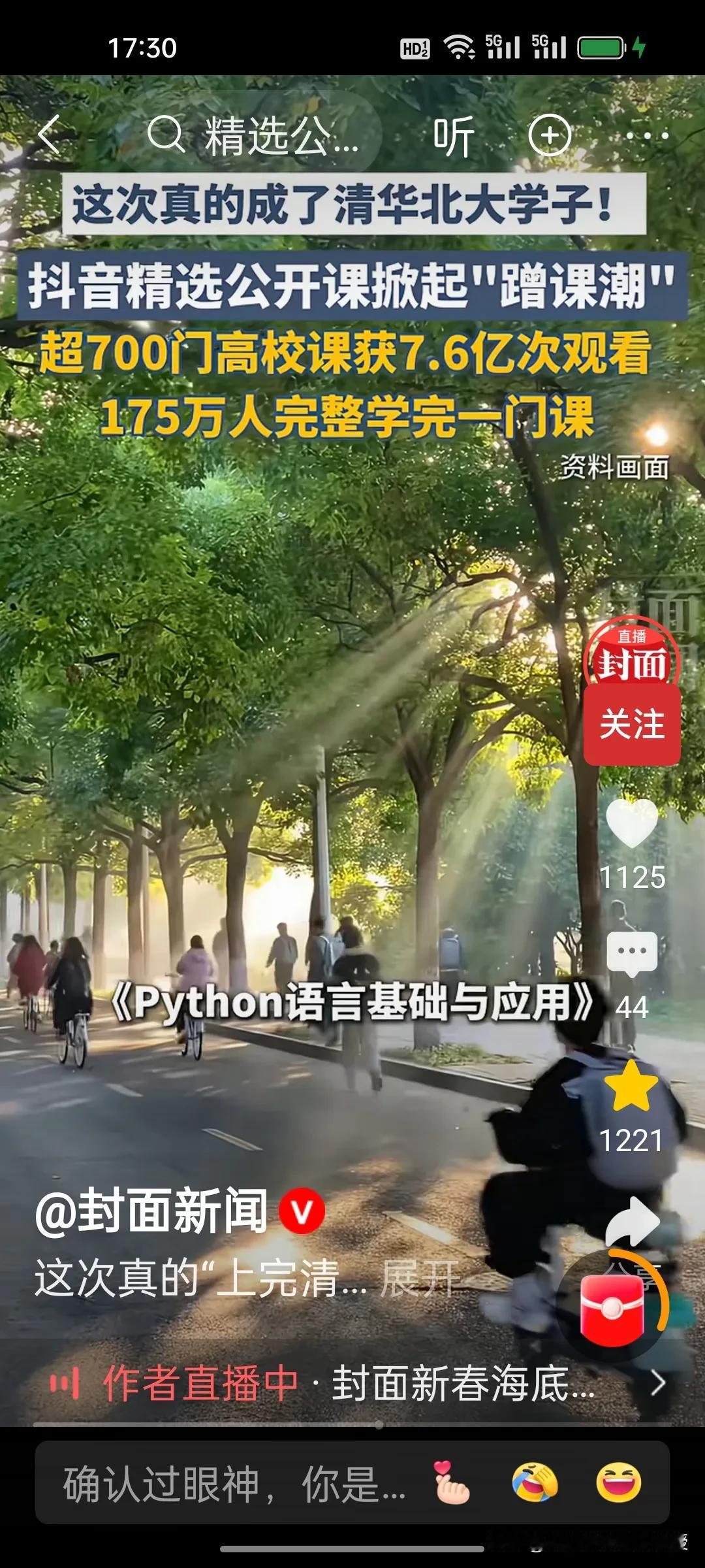 清北敞开校门,这才是大学该有的样子!刚刚看到香港城市大学校长接受《人民日报》专访,他的一句“高校要敞开大门办学”,点破了中国高等教育的新趋势。当1800门抖音精选公开课让1.45亿人蹭上清北课程,我们终于明白:优质教育不该是象牙塔里的私藏。 国外顶尖大学早已把公开课做成全球共享的知识盛宴,而清北等名校通过短视频平台开放课程,正是在跟上这个步伐。7.6亿次观看、175万人完整学完一门课,这些数字证明,当大学放下门槛,知识就能成为照亮更多人的光。 教育的本质是传递,不是垄断。你支持更多高校敞开大门吗?冬日生活打卡季