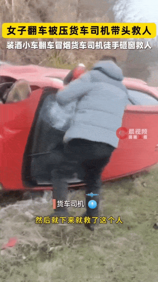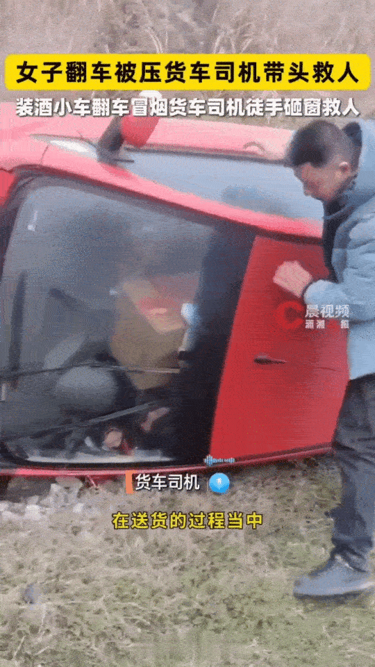 女子翻车被压货车司机带头救人带年货乘火车实用指南装酒小车翻车冒烟货车司机徒手砸窗救人这一幕太暖心了,湖南湘乡小车侧翻冒烟,一名女司机被困在里面,货车司机看到后义无反顾救人,在一众人的齐心协力下,女司机成功脱离险境,这简直太正能量了!