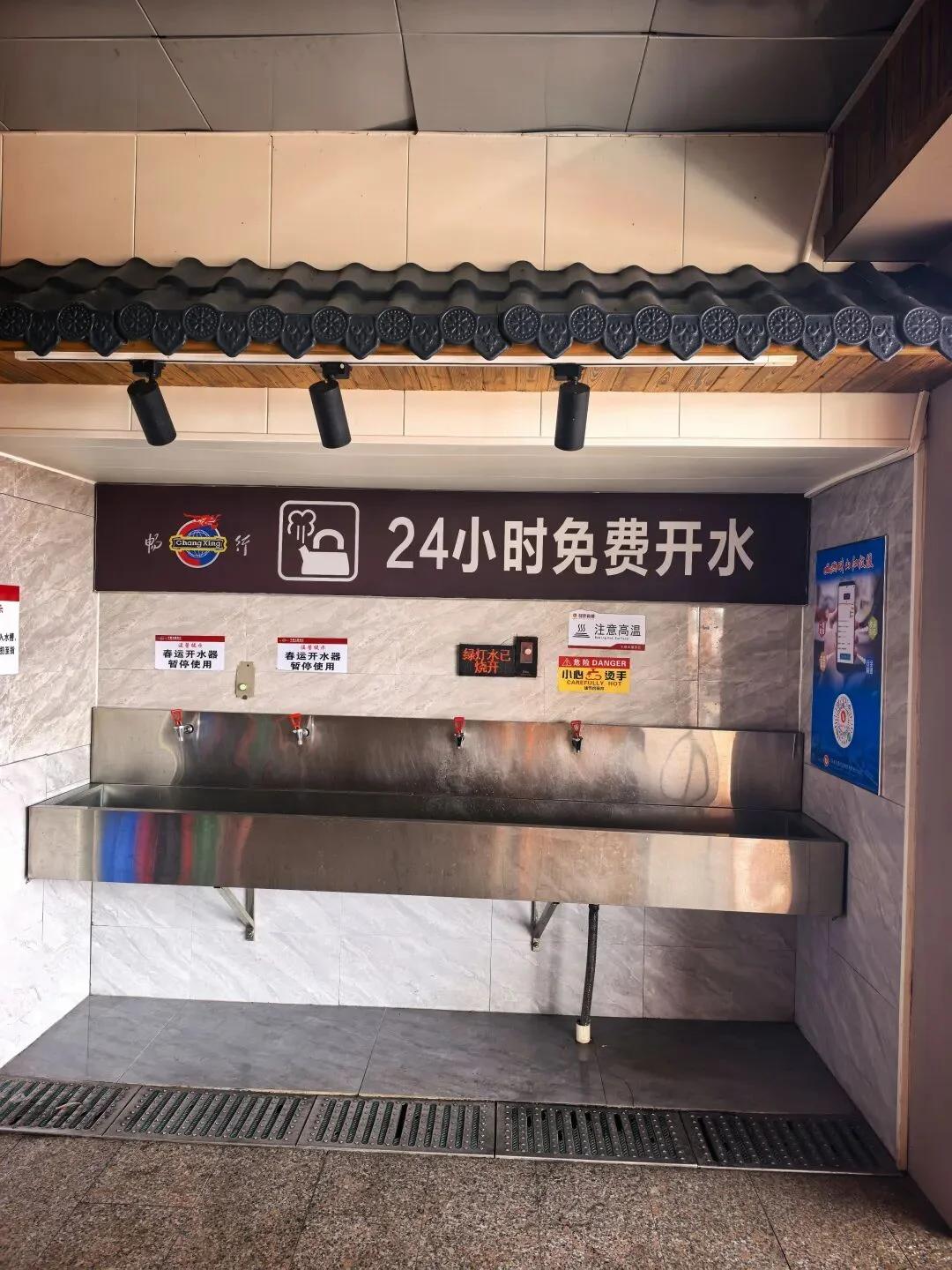 江西一高速服务区。 有两个水龙头被锁住了,贴着温馨提示“春运开水器暂停使用”。负责人说“共有4个水龙头,都开着,2个坏了,临时锁起来,大约半小时修好了,是表述上产生歧义。” 如果是平时人少,只使用2个水龙头,可以。春运时4个都开放,那就把标语暂时撕下来,节后再贴上去,这样不就不会产生歧义了?春运大家都靠热水煮泡面,喝热水,只开放两个确实不够用。 只是半小时就能修好,为什么要锁?还是希望服务窗口能人性化管理,给司机师傅们提供便利。