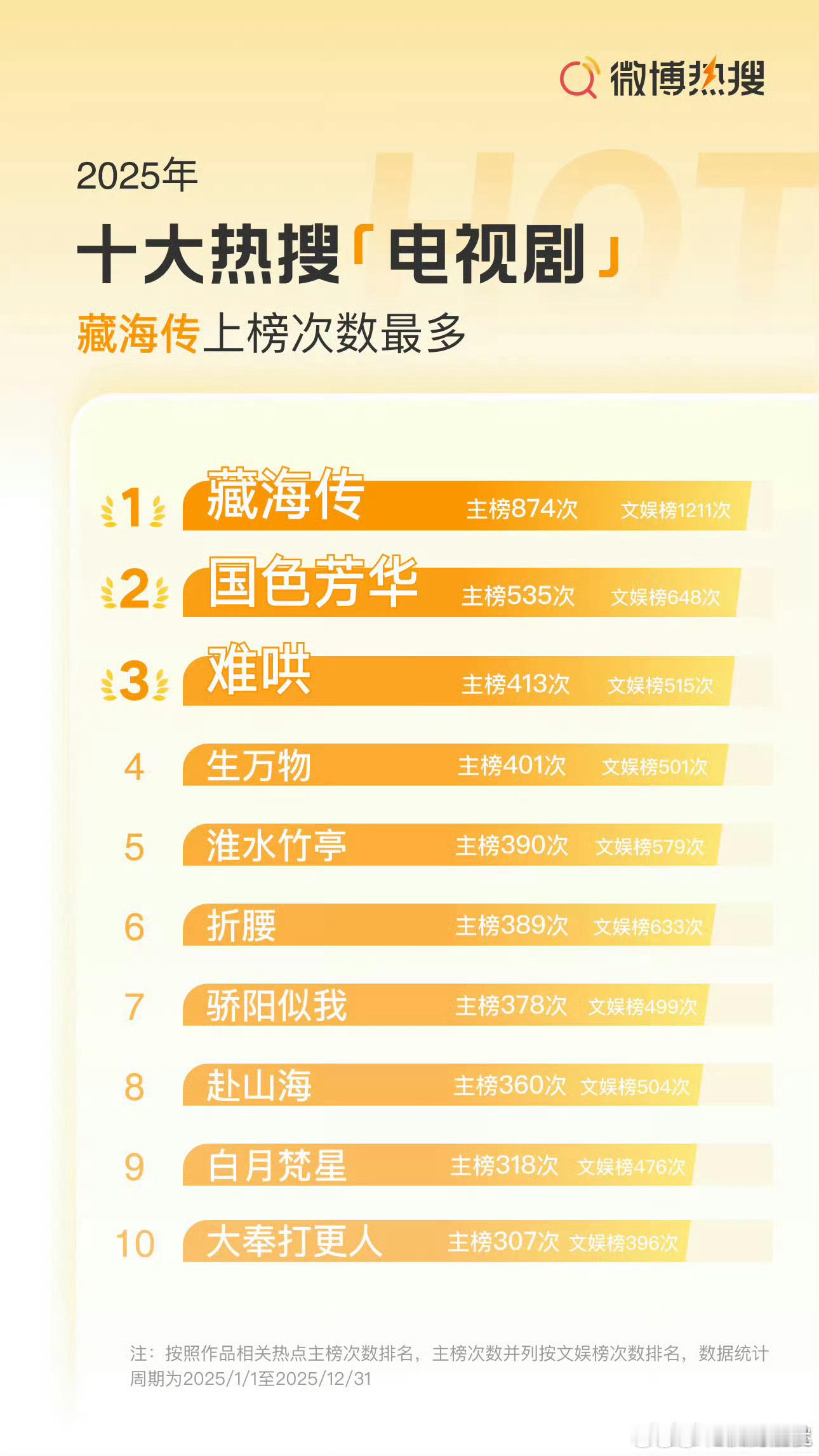 2025年十大热搜综艺2025年十大热搜演唱会2025年十大热搜电视剧2025年十大热搜电视剧,你追过哪一部?肖战 张婧仪 《藏海传》杨紫 李现 《国色芳华》白敬亭 章若楠 《难哄》杨幂 欧豪 《生万物》刘诗诗 张云龙 《淮水竹亭》宋祖儿 刘宇宁 《折腰》宋威龙 赵今麦 《骄阳似我》成毅 娜扎 《赴山海》白鹿 敖瑞鹏 《白月梵星》王鹤棣 田曦薇 《大奉打更人》