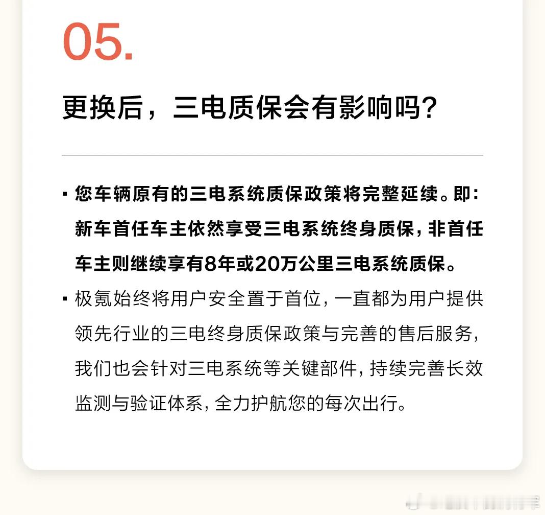 3.更换后三电质保依然可以转移到新车上,权益不受影响。