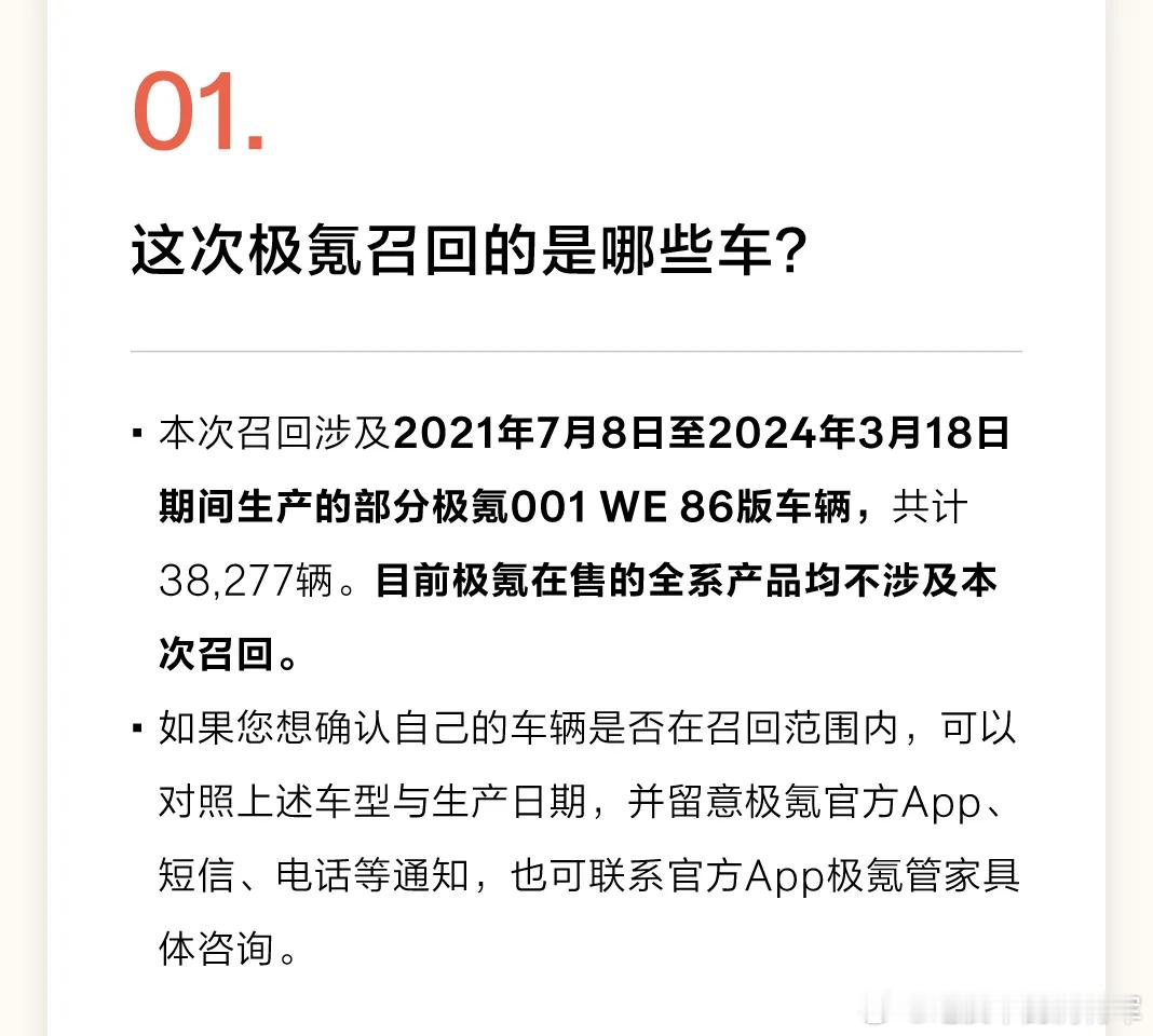 we86 001车主看过来啦,极氪官宣召回所有的we86车型,具体信息如下: