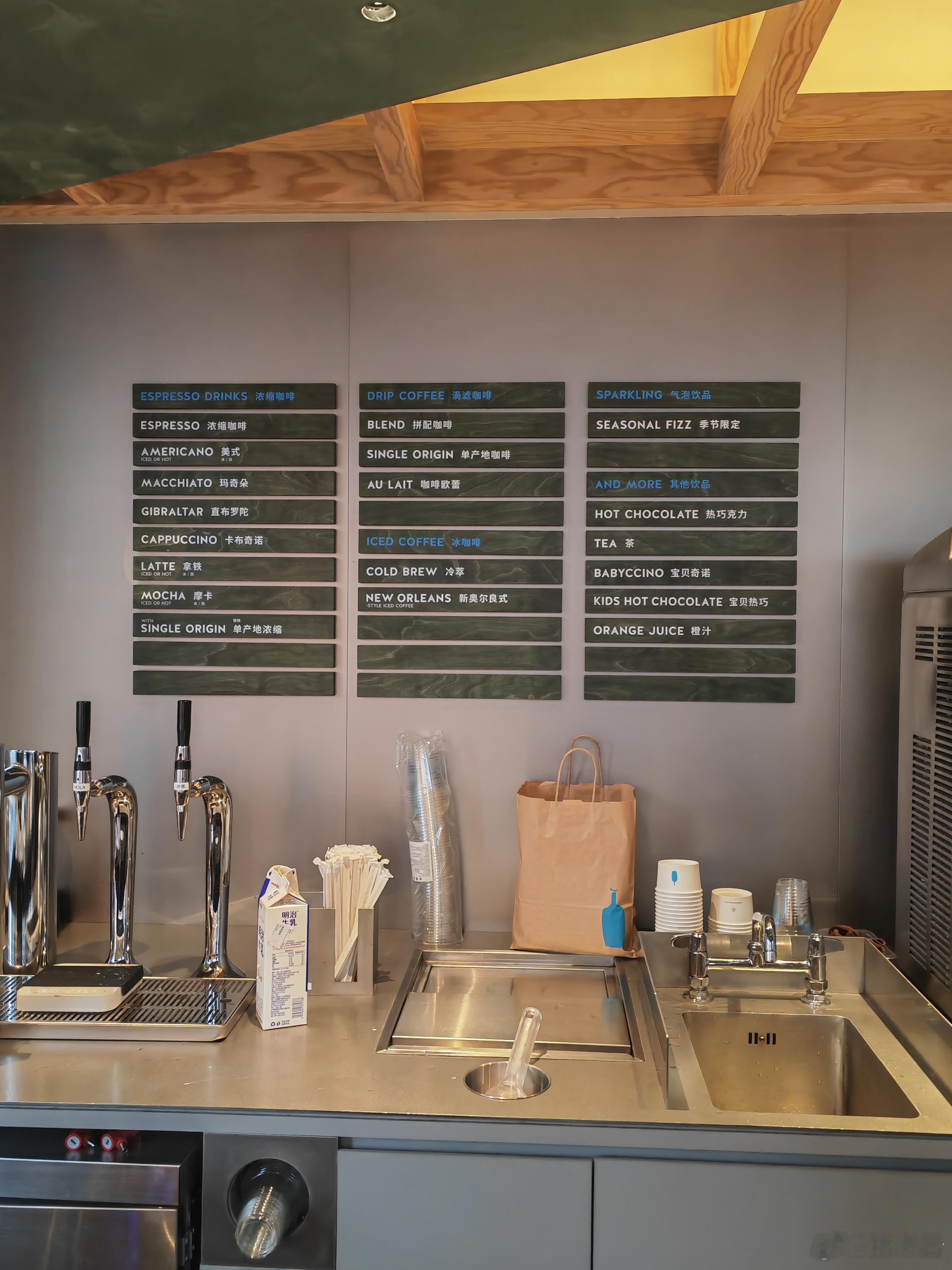 来都来了,就打个卡,菜单与日本是完全不同了,形式上,也没有了店内直接烘焙的前店后厂。在吧台浏览了菜单,手冲只有云南孟连(卖48/杯)和一款叫传奇律动的拼配。好吧,连个埃塞豆子都没了。咖啡师手冲倒是严格按照流程来,可惜豆子拼配水平没有长进,反而比东京更差了。拿到拍照,喝了一口,焦糊味道,烂稻草味道明显,满满云南豆风味。喝了一口,实在喝不了第二口,扔进了垃圾桶。说实话,还没有manner,luckin的美式好喝。