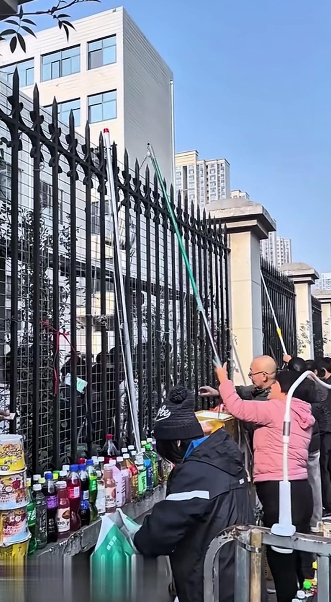 铁栅栏内是求购饮食的学生,而外面是用杆子往里送物的商贩,看到这样的画面,你作何感想? 近日,有网友上传了一段视频。画面中,一堵装有黑色铁栅栏的围墙内,人头攒动,都是前来求购饮食的学生;而铁栅栏外的围墙台面上,摆满了商贩准备的各式饮料,他们正不断用杆子往里面送东西。 这样的场景,不禁让人质疑:是这所学校没有食堂,还是食堂的食物不如校外的实惠好吃?亦或是校领导怕担责任,默许学生吃外面的东西,以便出问题时能以此推脱? 看着铁栅栏外整排的饮料,还有摊贩送来的饭菜,实在让人担忧学生们的饮食安全。这些东西虽能让人一时畅快,但吃多了对身体可没好处!如此一来,也就不难理解学校为何会派专人驱赶这些摊贩了。毕竟,学生要是吃出问题,学校也难辞其咎。 校园门口食品