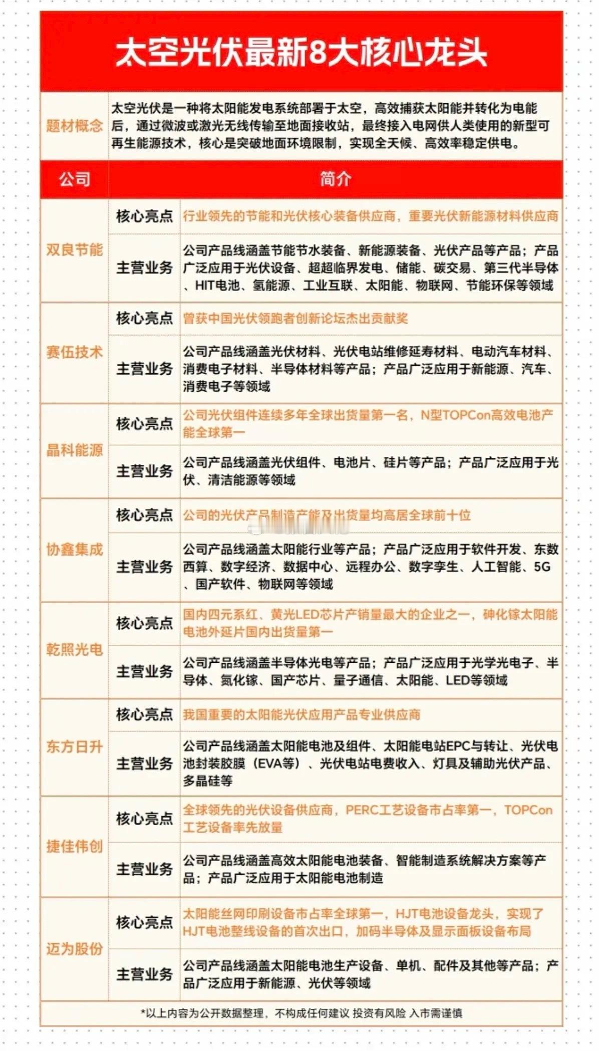 太空光伏:最新8大核心龙头!