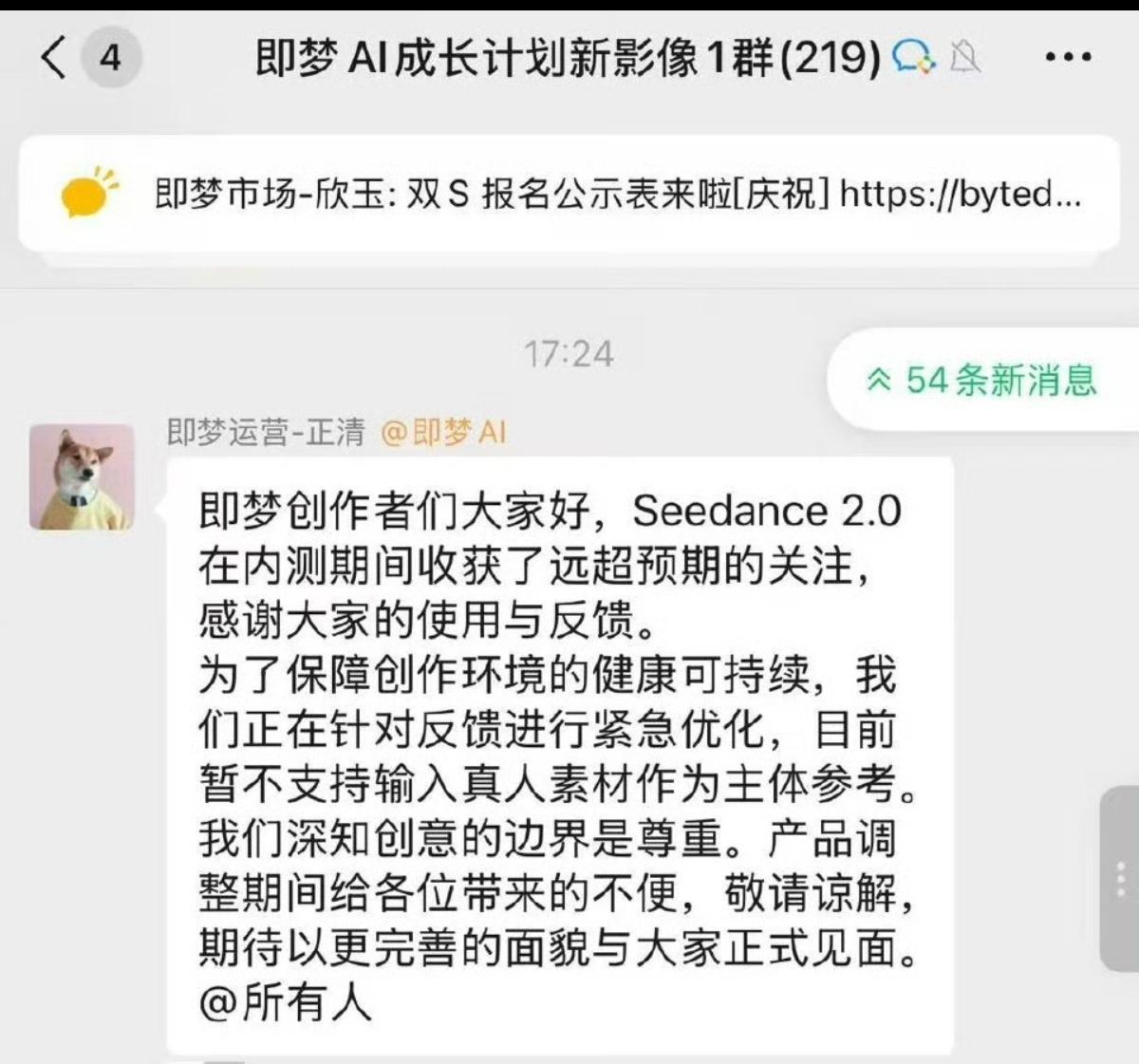 首先提问:大家上传一张名人的照片让AI平台生成视频,然后平台通过照片名人过去的视频为数据生成了其声音,这算不算侵权? 大家有点大惊小怪了。 如果你们有闲时间看看很多平台的注册需知,就会发现各种类似裸奔的条款很多。 当我们通过互联网获得许多便捷的时候,一定会是建立在失去隐私等方面的前提。 像影视飓风TIM说的这事,实际即便他设定了内容不许成为AI饲料,有用吗?没用,因为别人转载了也有可能被AI吃。 另外,抛开自动,现在各种傻瓜式声音克隆AI应用,随便用一个人的声音就能克隆,这些应用该禁止吗?或者是不是应该设定更严格的克隆条件? 另外,不止于平台,车、终端设备,也都会通过用户的数据进行训练,这些很难躲得过。 AI这东西最根本问题除了算力就是权限,除非你愿意如裸奔一样的状态把自己交给AI,不然无法获得真正的满血AI能力,接下来就看法规以及端侧AI的防火墙等等层面的发展。 说到底,目前就是AI的野蛮发展周期,各家都在摸着石头过河,都存在边界不清的问题,跟当年互联网时代一模一样。(如今又是中国跟海外巨头在AI赛道上的竞速阶段,他们的优势更多在于算力与跑的早,而我们的优势更多则是庞大的用户量与数据) 最后,字节的Seedance2.0确实称得上2026开年王炸,确实有点东西,可惜目前仍在内测,普通用户还得等等! 另外,即梦方面暂停了真人素材作为参考主体。