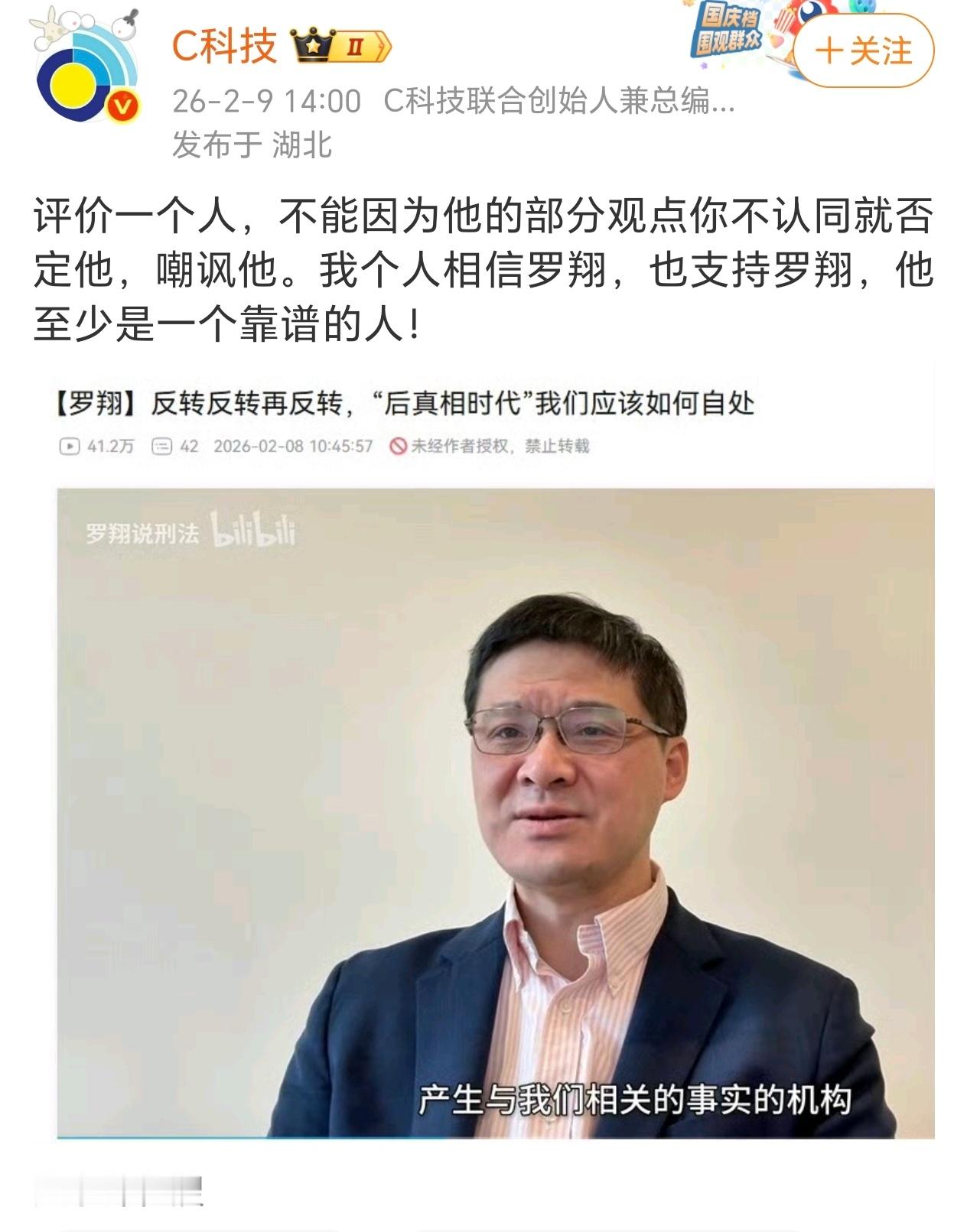 科技大V:罗翔是一个靠谱的人!