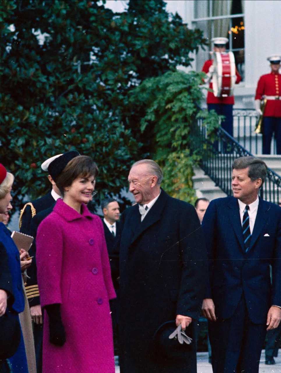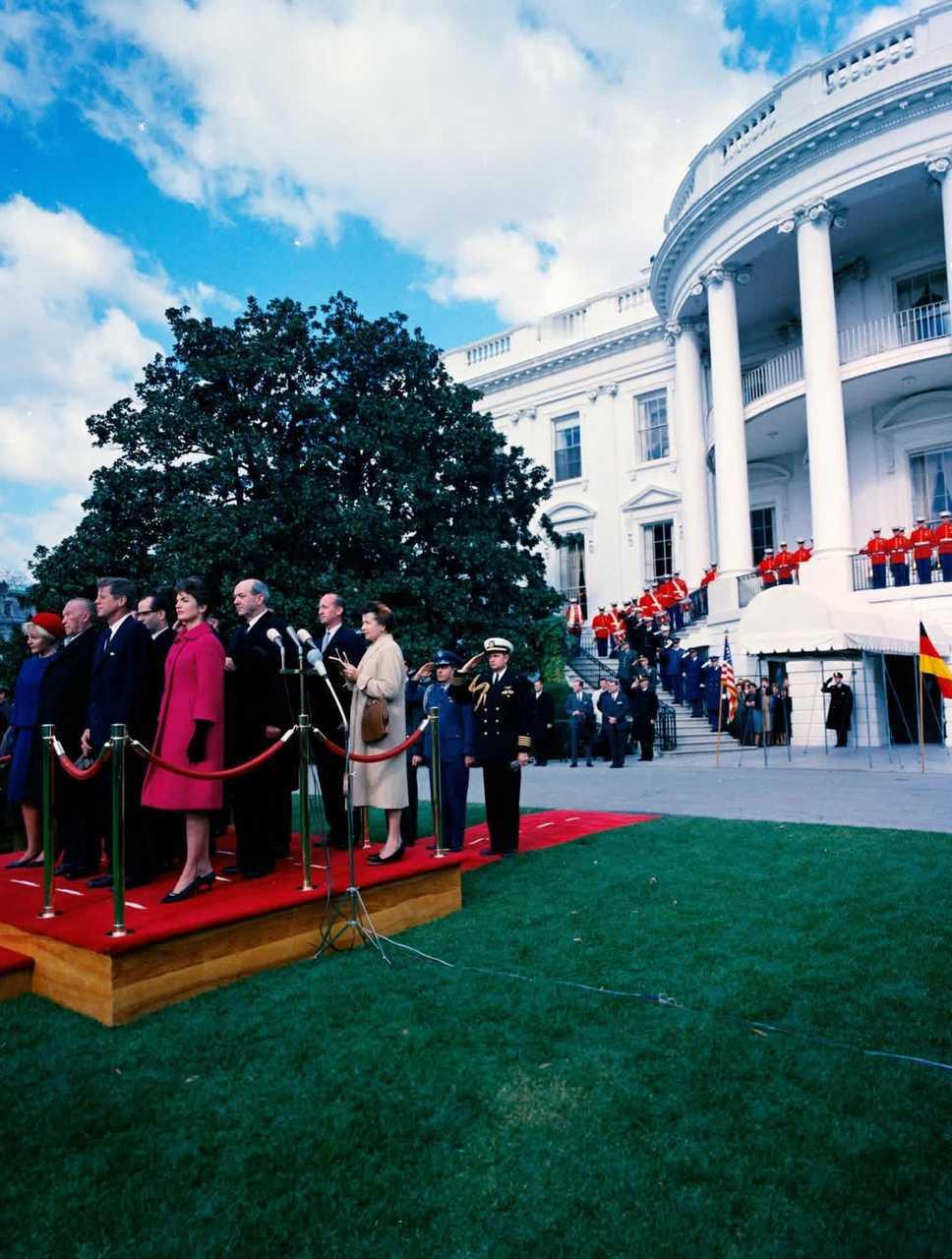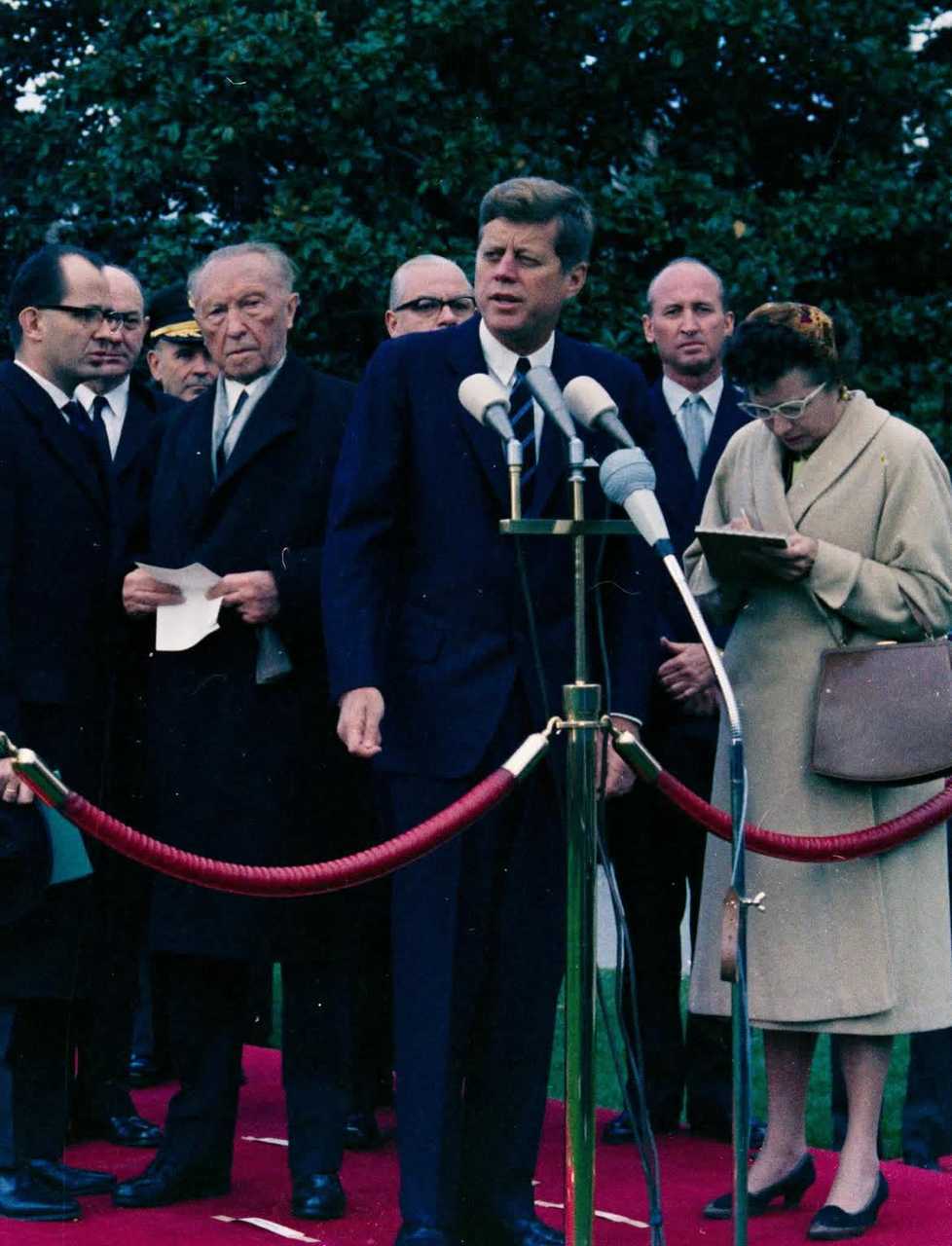 【来自投稿】1962年11月14日 美国总统肯尼迪和夫人杰奎琳在白宫迎接前来美国访问的西德总理阿登纳