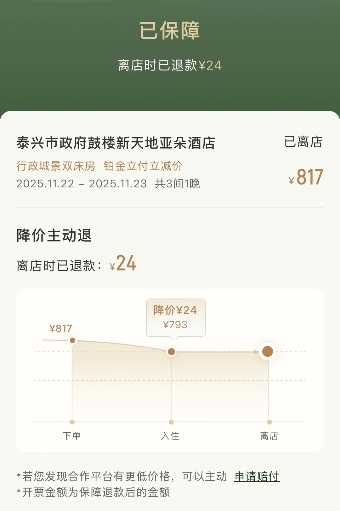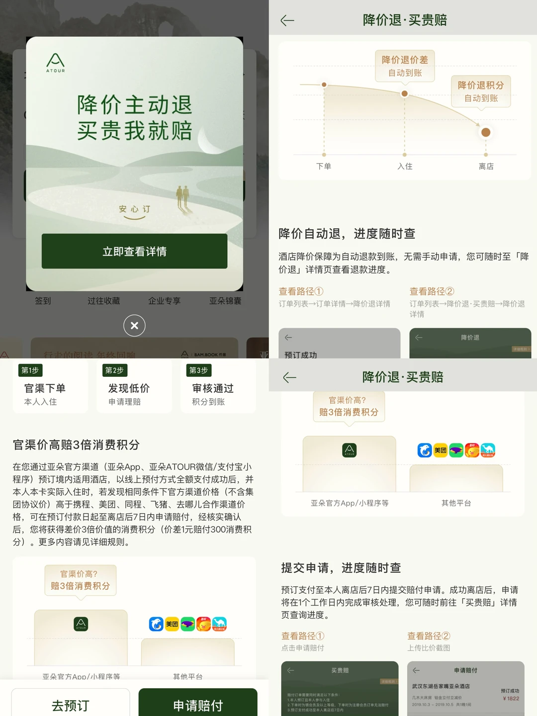 近期发现亚朵会员「降 价退 + 买贵赔」真的挺友好: