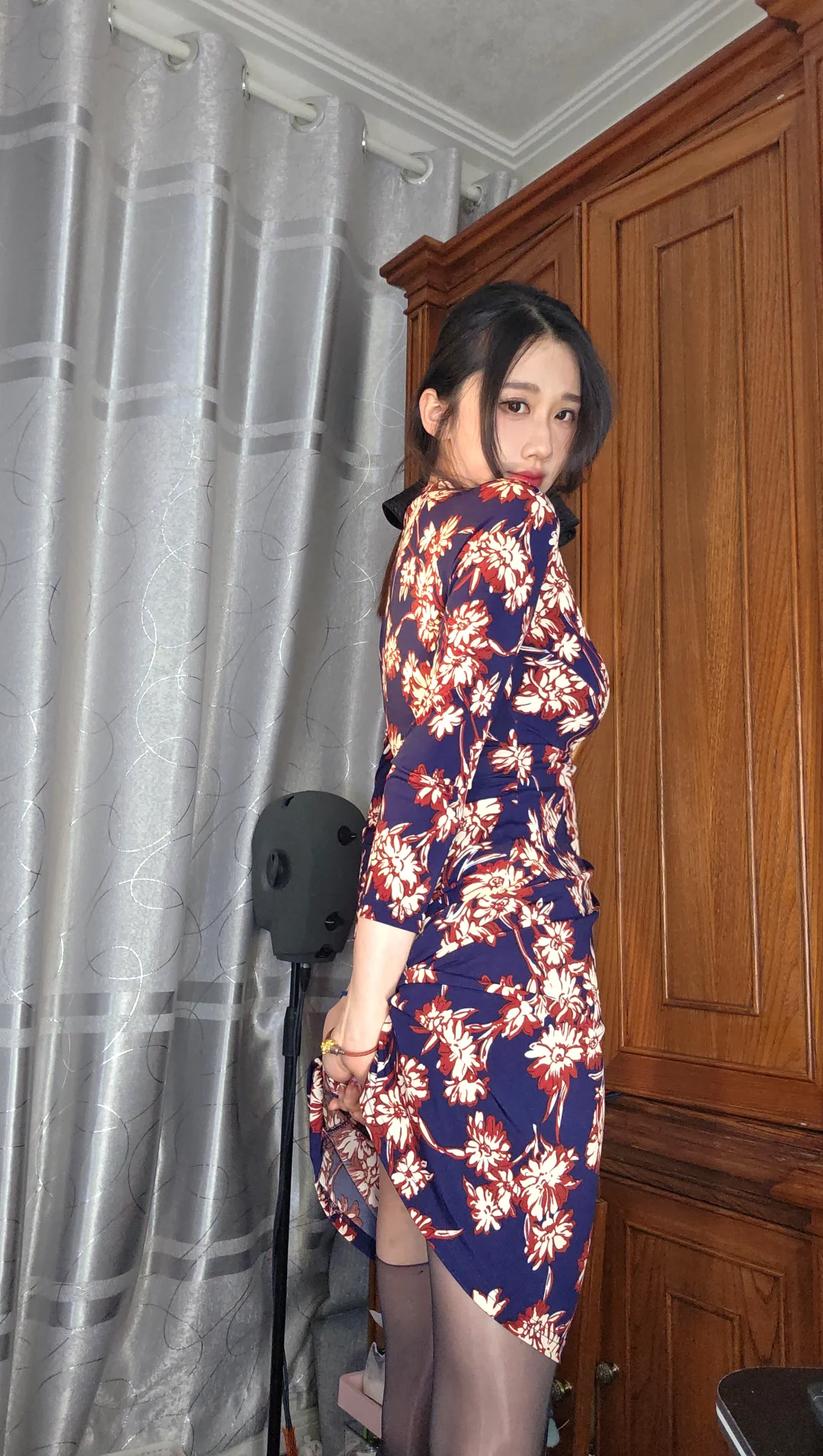 甜美少女风,蕾丝连衣裙搭配。碎花吊带自拍