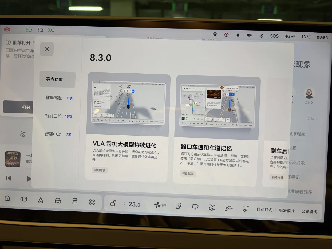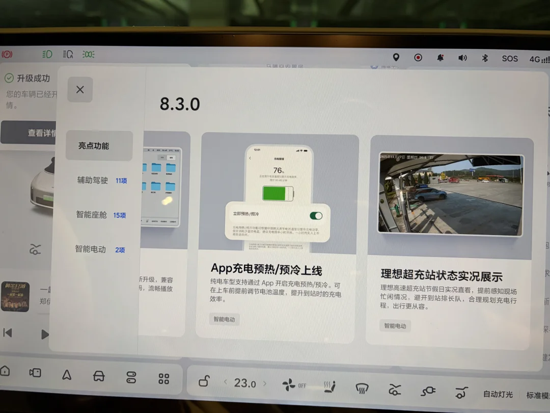 8.2的进步已经非常明显,我从来不用城区noa,最近天天用,前天看微博说单踏板模式要来在年后,我以为年后8.3呢,没想到年前就推送了,这个更新迭代的速度,看来理想也想让大家过年回家路上更安全省心放心吧,已经升级完毕,等会出去试试8.3版本,新年有理想OTA 8.3